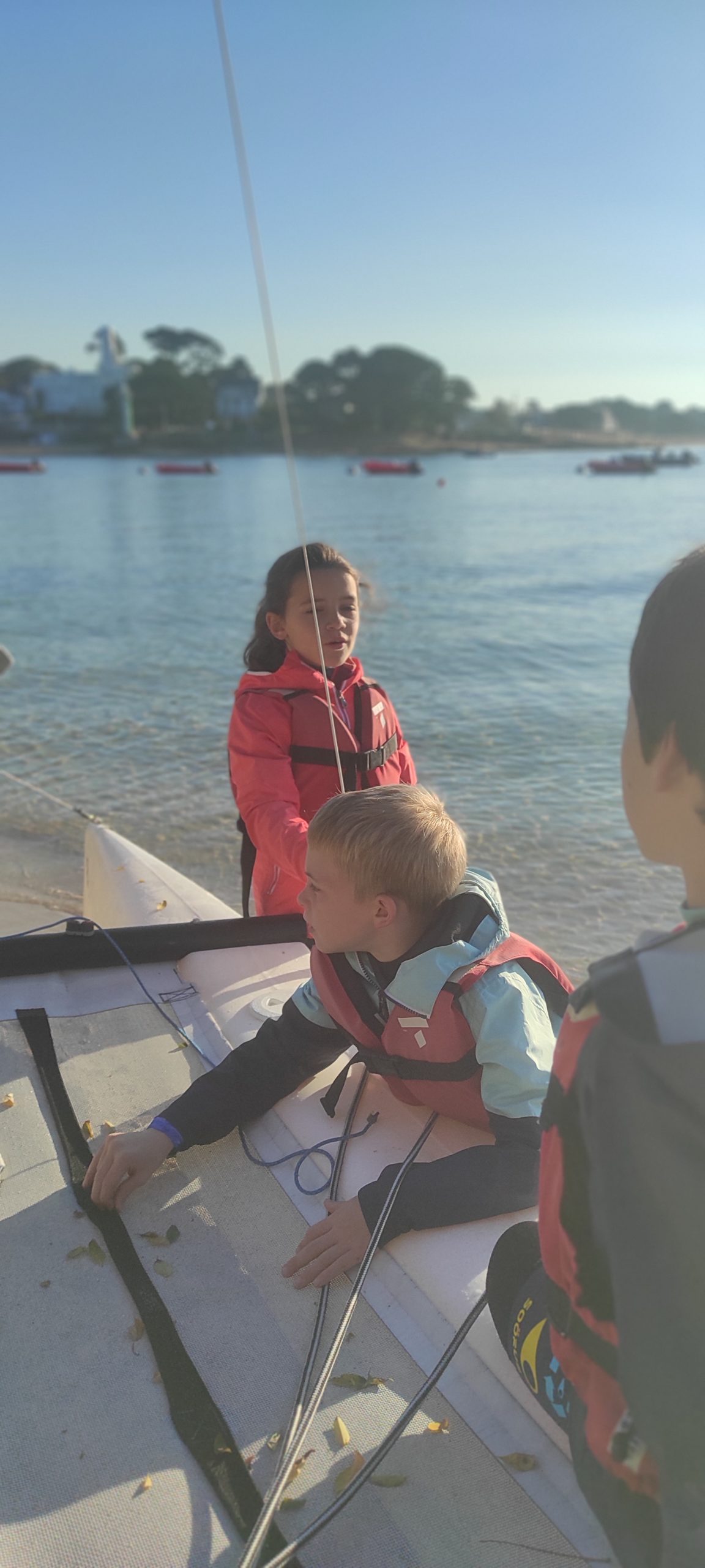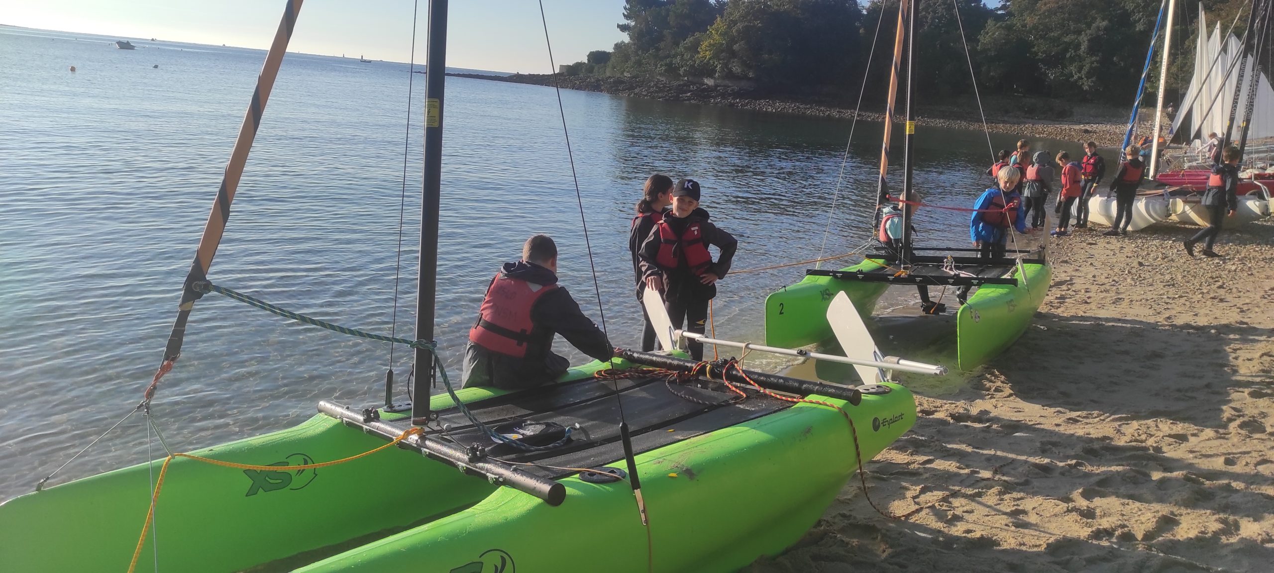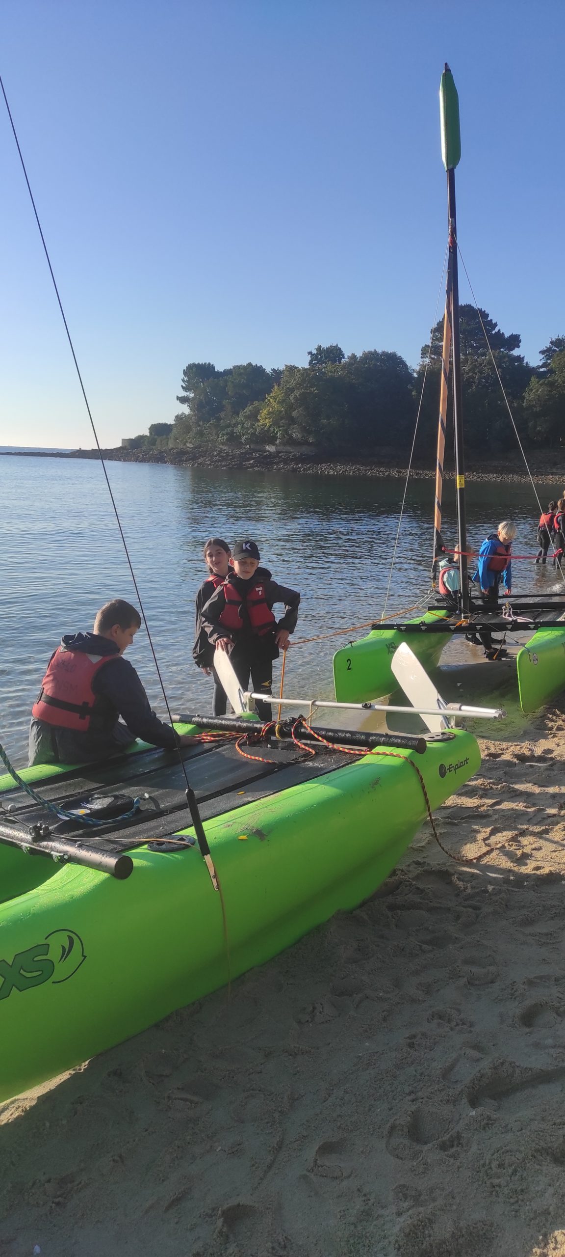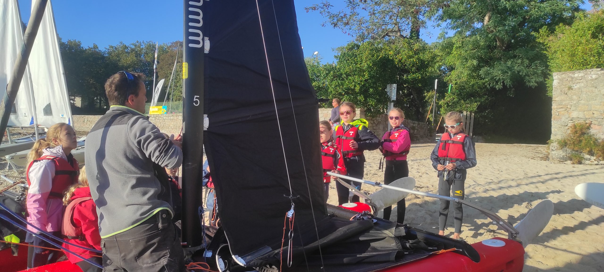 Après avoir découvert le matériel et les règles de sécurité avec les moniteurs, ils ont navigué en catamaran et en kayak. Le premier jour, le grand soleil et le peu de vent ont permis une mise en route en douceur.