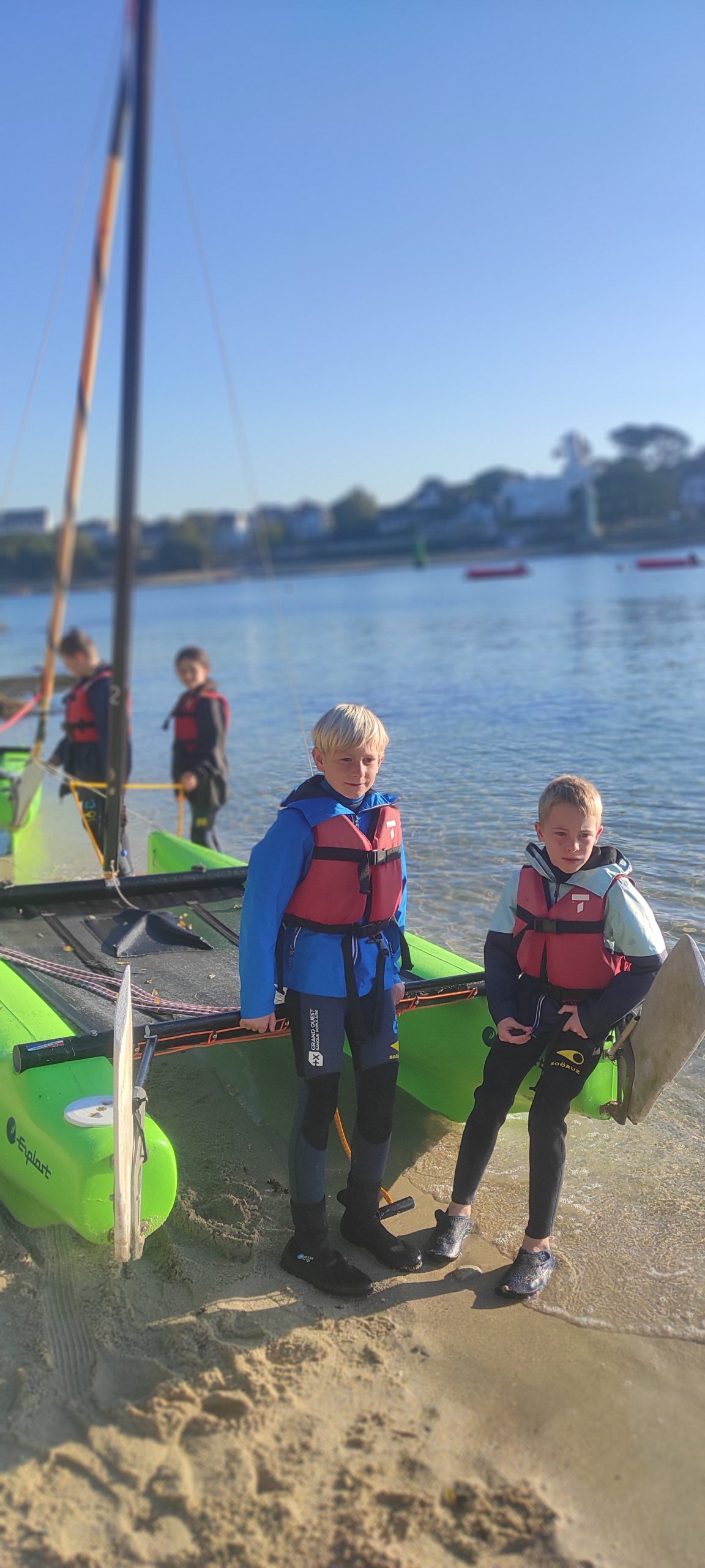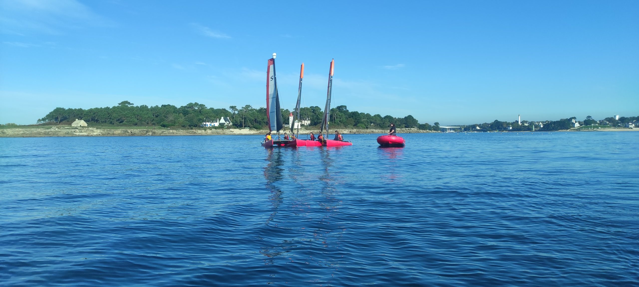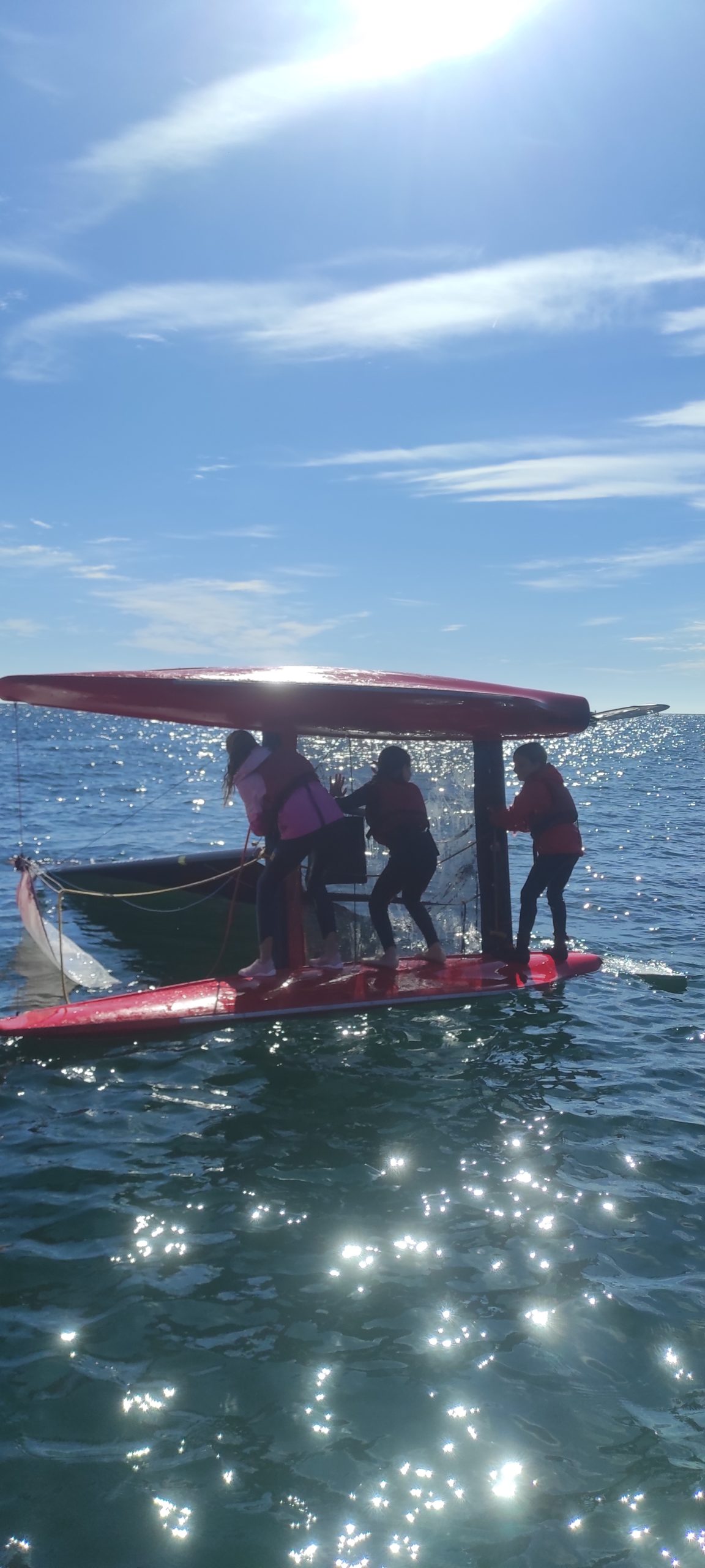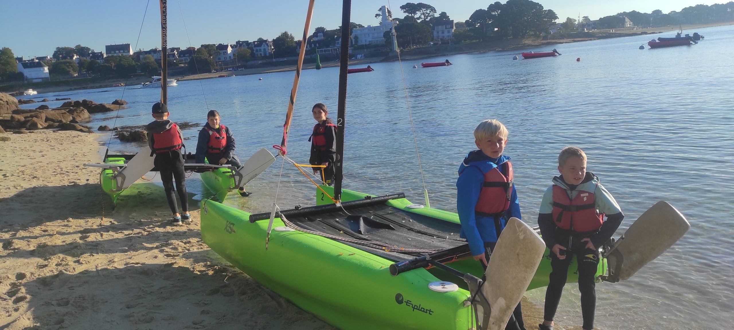 Après avoir découvert le matériel et les règles de sécurité avec les moniteurs, ils ont navigué en catamaran et en kayak. Le premier jour, le grand soleil et le peu de vent ont permis une mise en route en douceur.