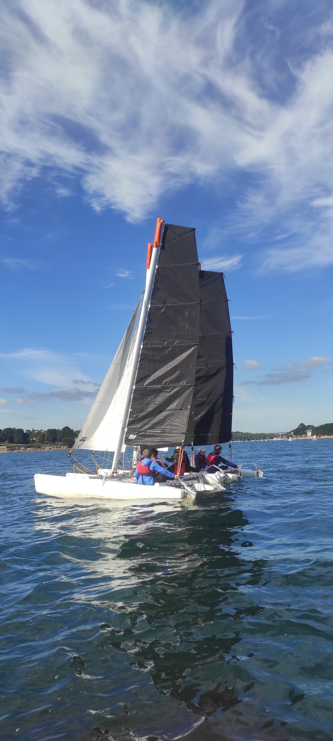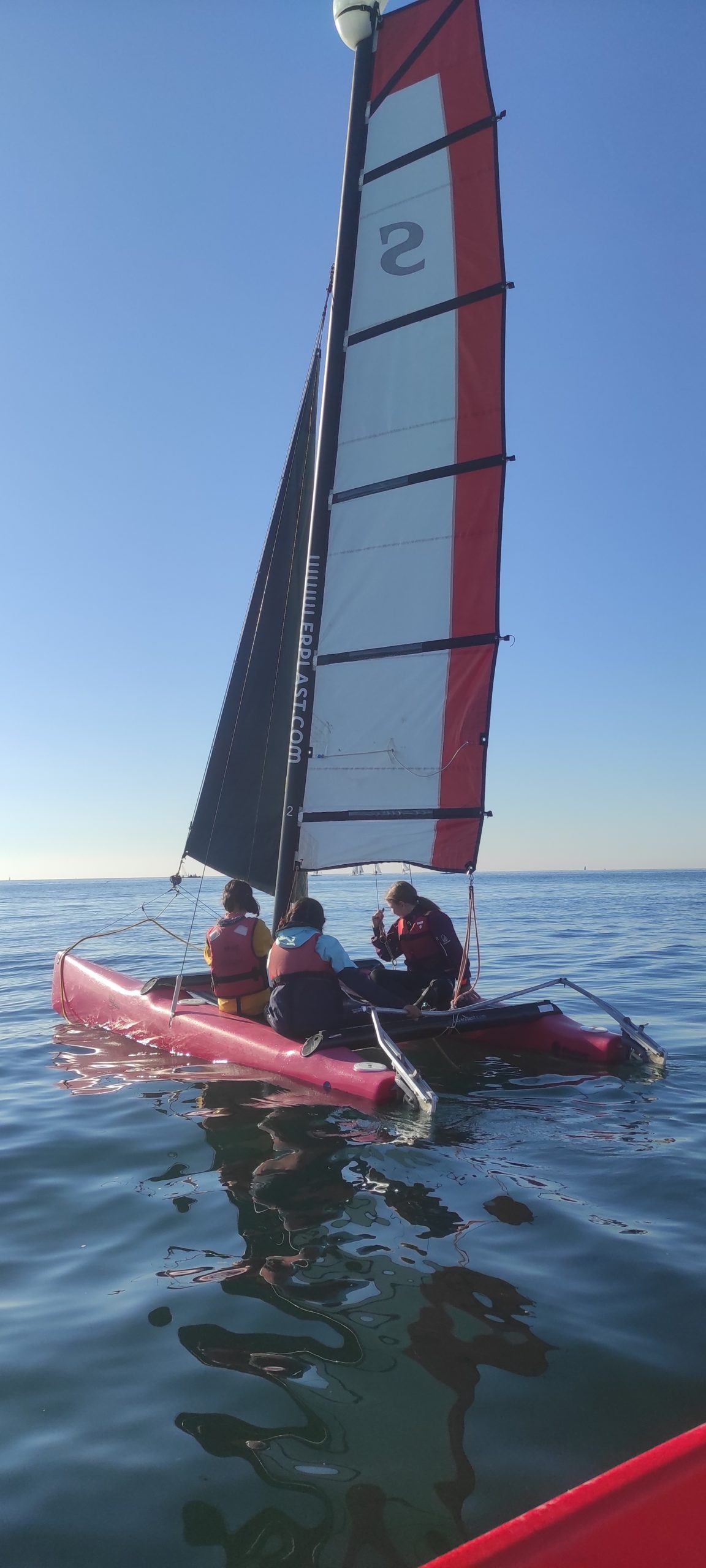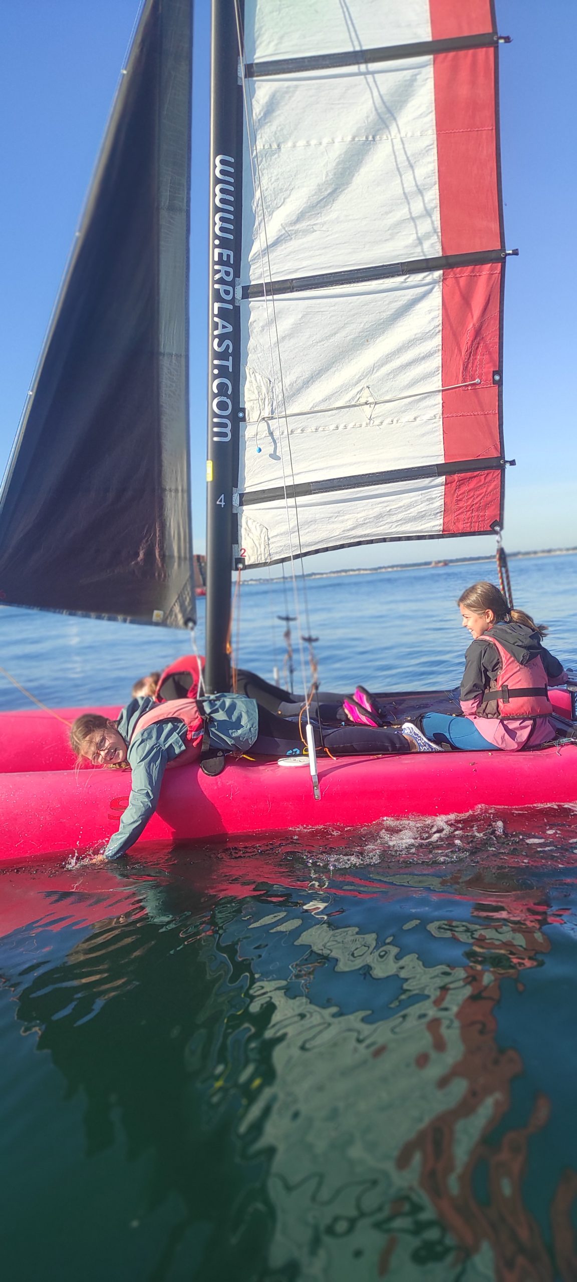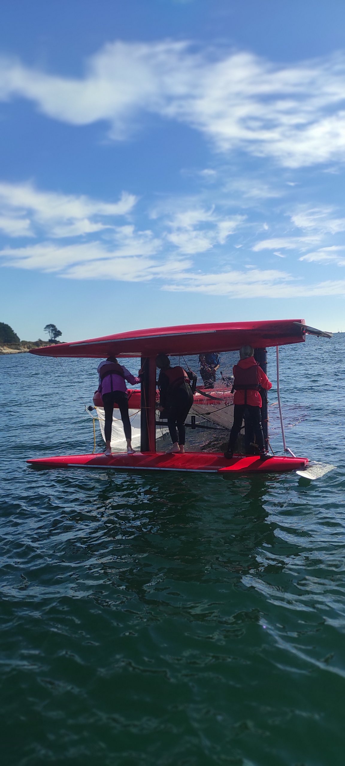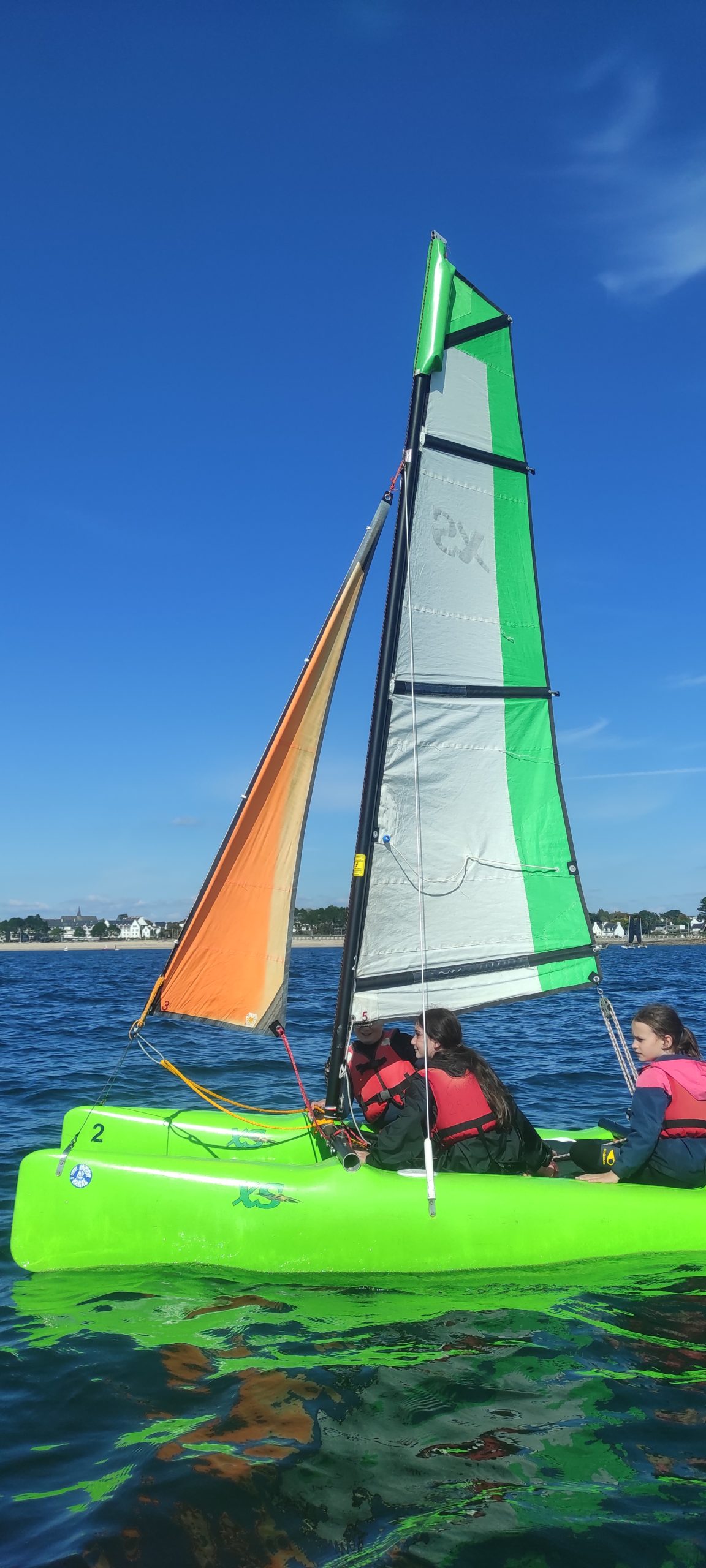 Après avoir découvert le matériel et les règles de sécurité avec les moniteurs, ils ont navigué en catamaran et en kayak. Le premier jour, le grand soleil et le peu de vent ont permis une mise en route en douceur.