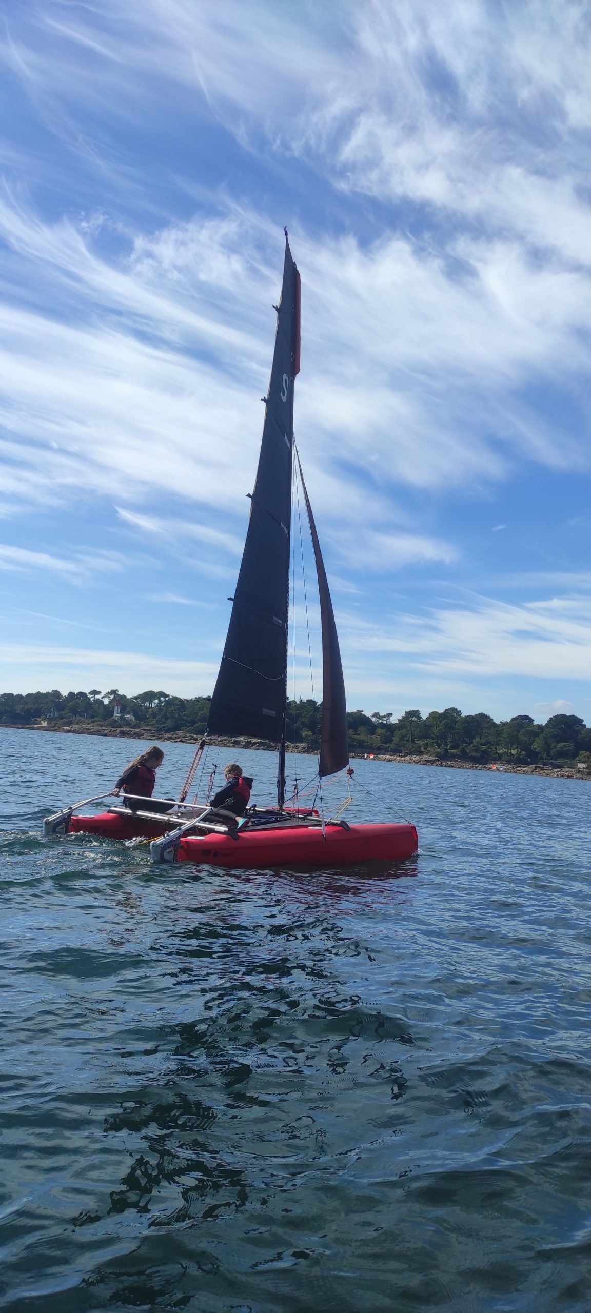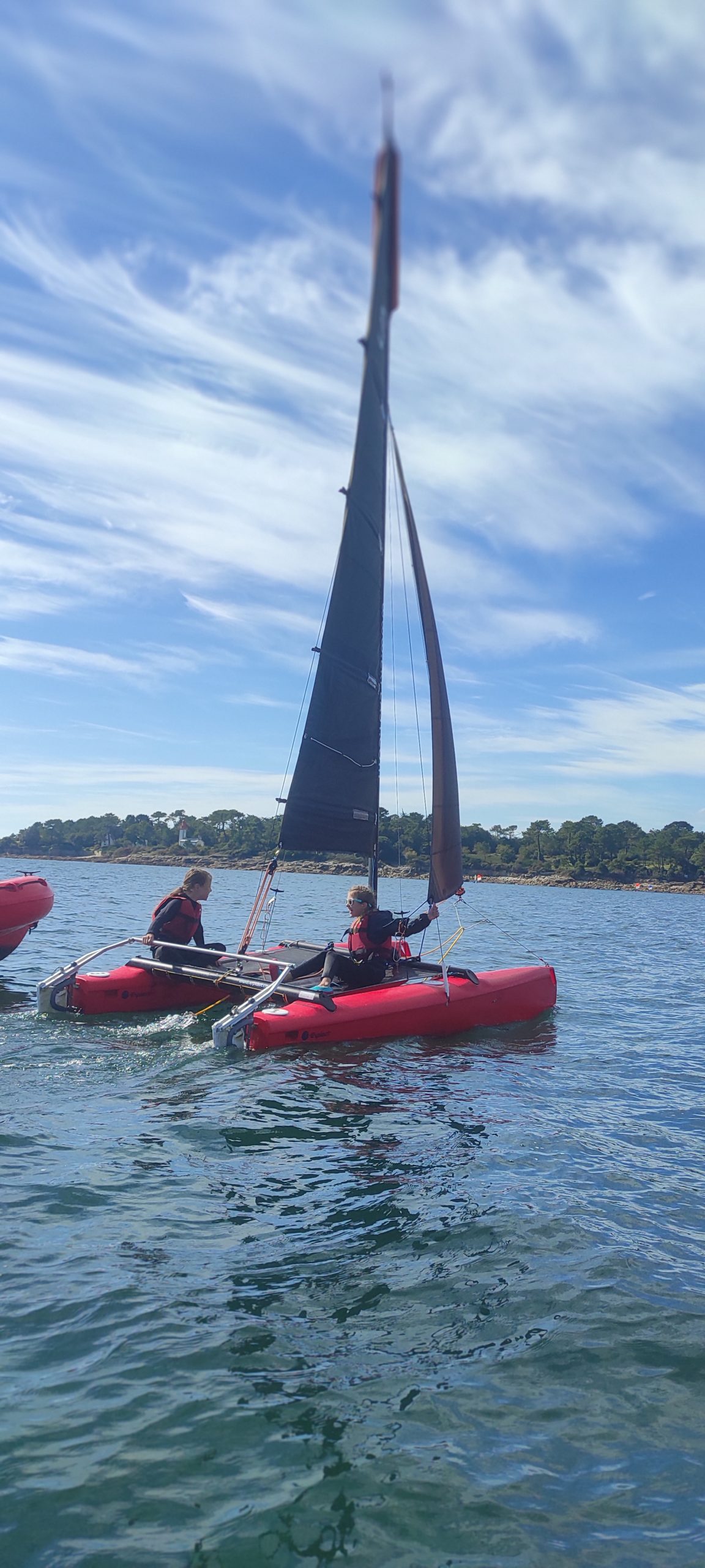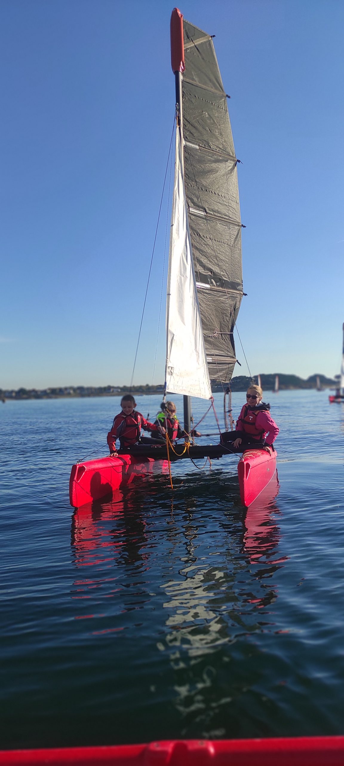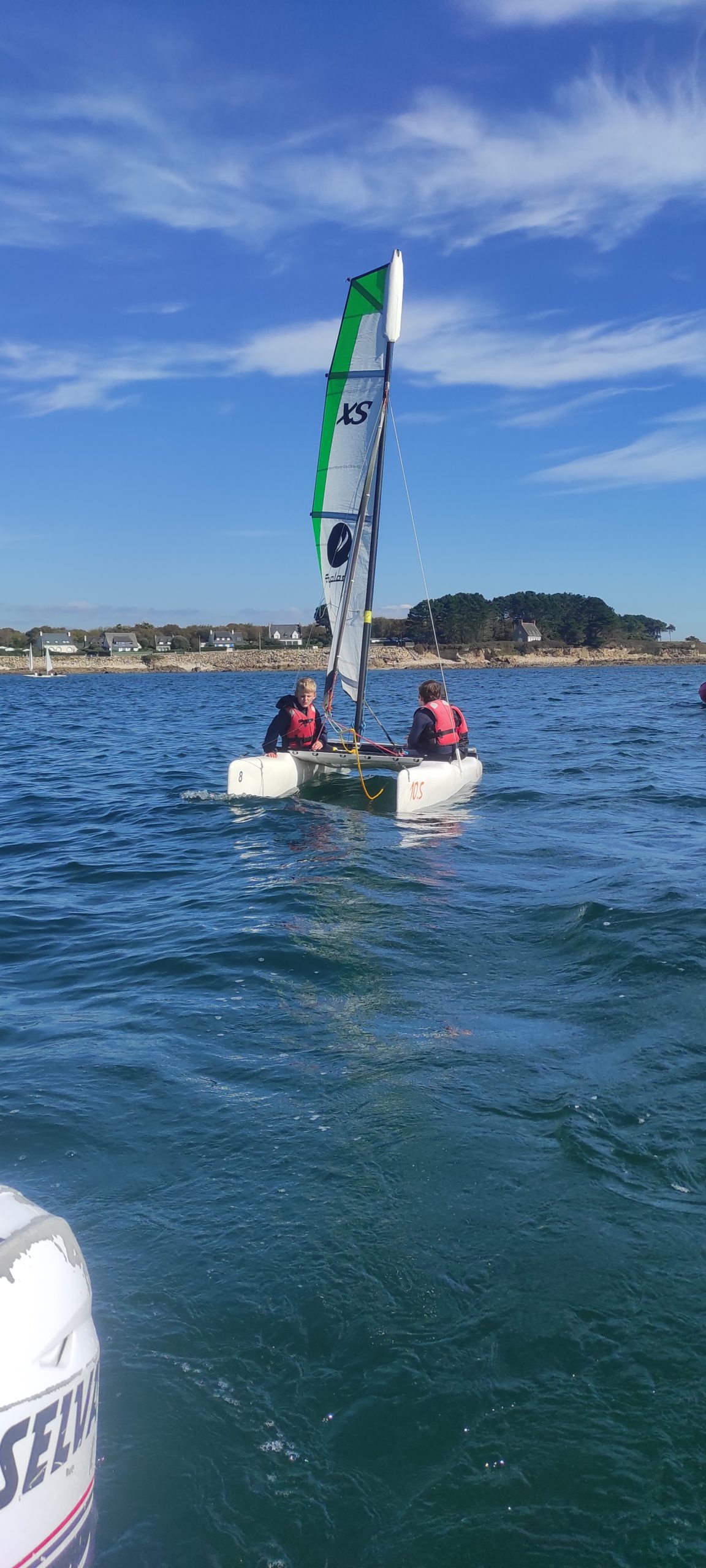 Après avoir découvert le matériel et les règles de sécurité avec les moniteurs, ils ont navigué en catamaran et en kayak. Le premier jour, le grand soleil et le peu de vent ont permis une mise en route en douceur.