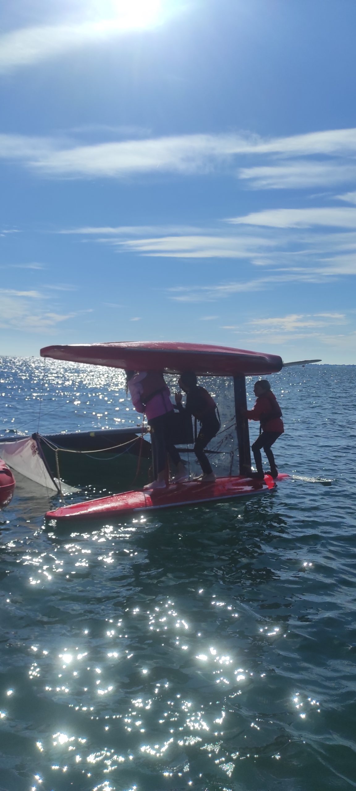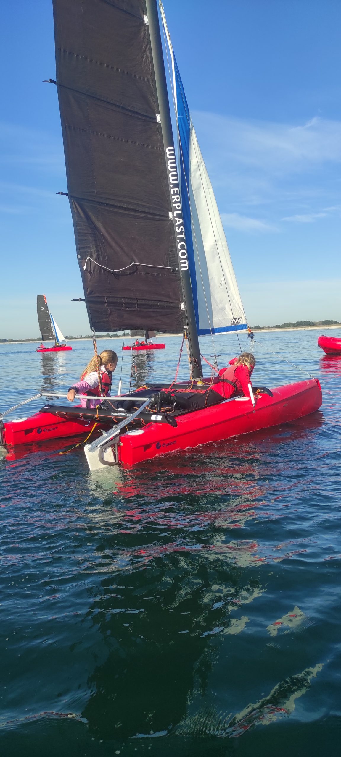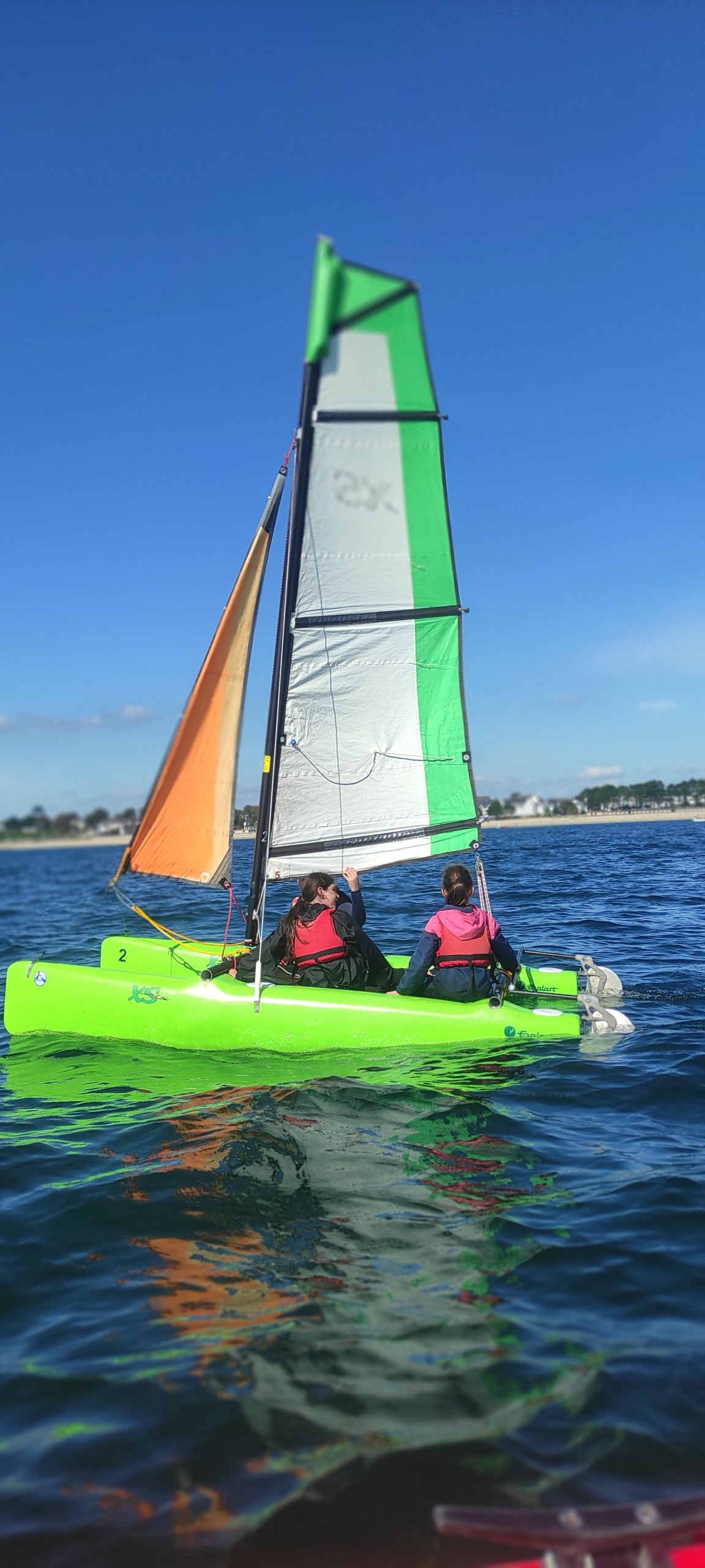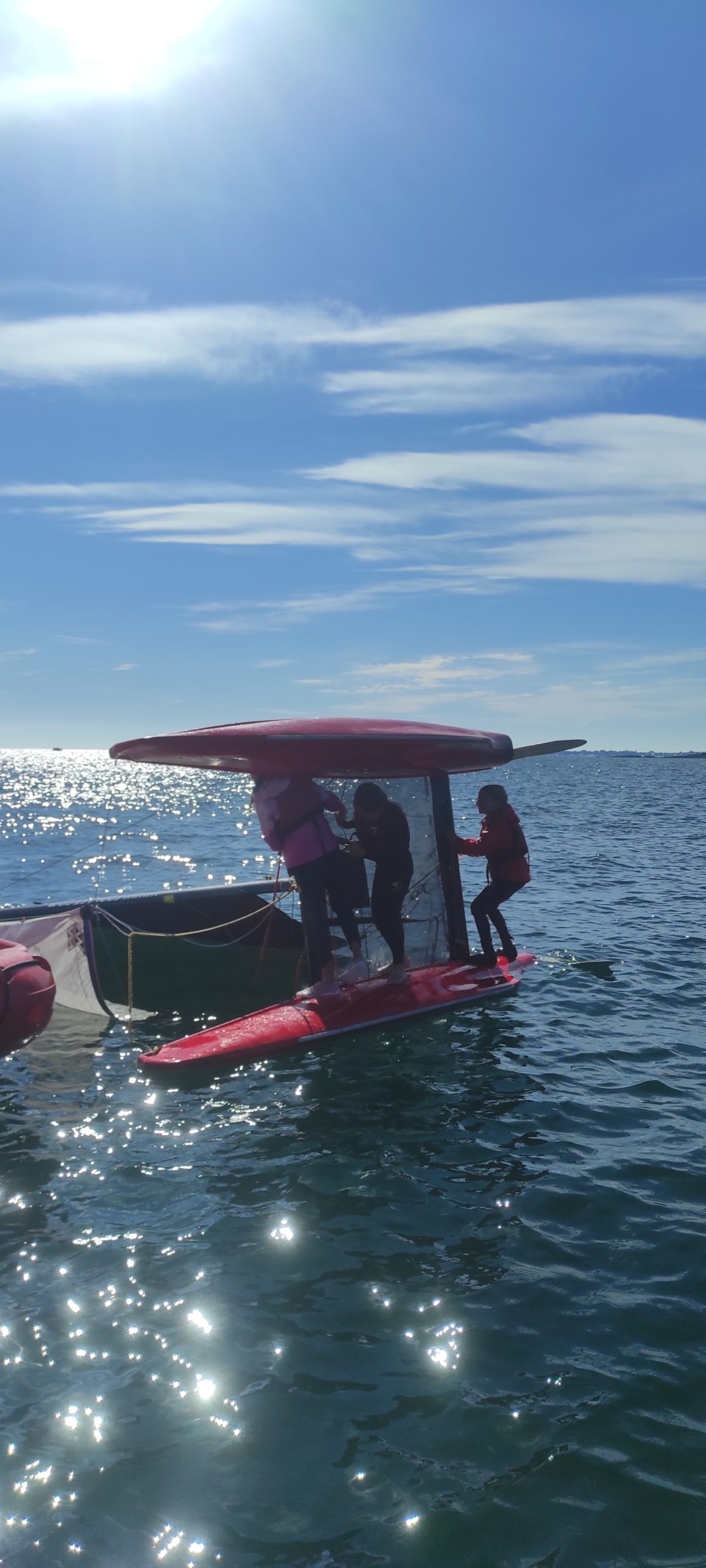 Après avoir découvert le matériel et les règles de sécurité avec les moniteurs, ils ont navigué en catamaran et en kayak. Le premier jour, le grand soleil et le peu de vent ont permis une mise en route en douceur.