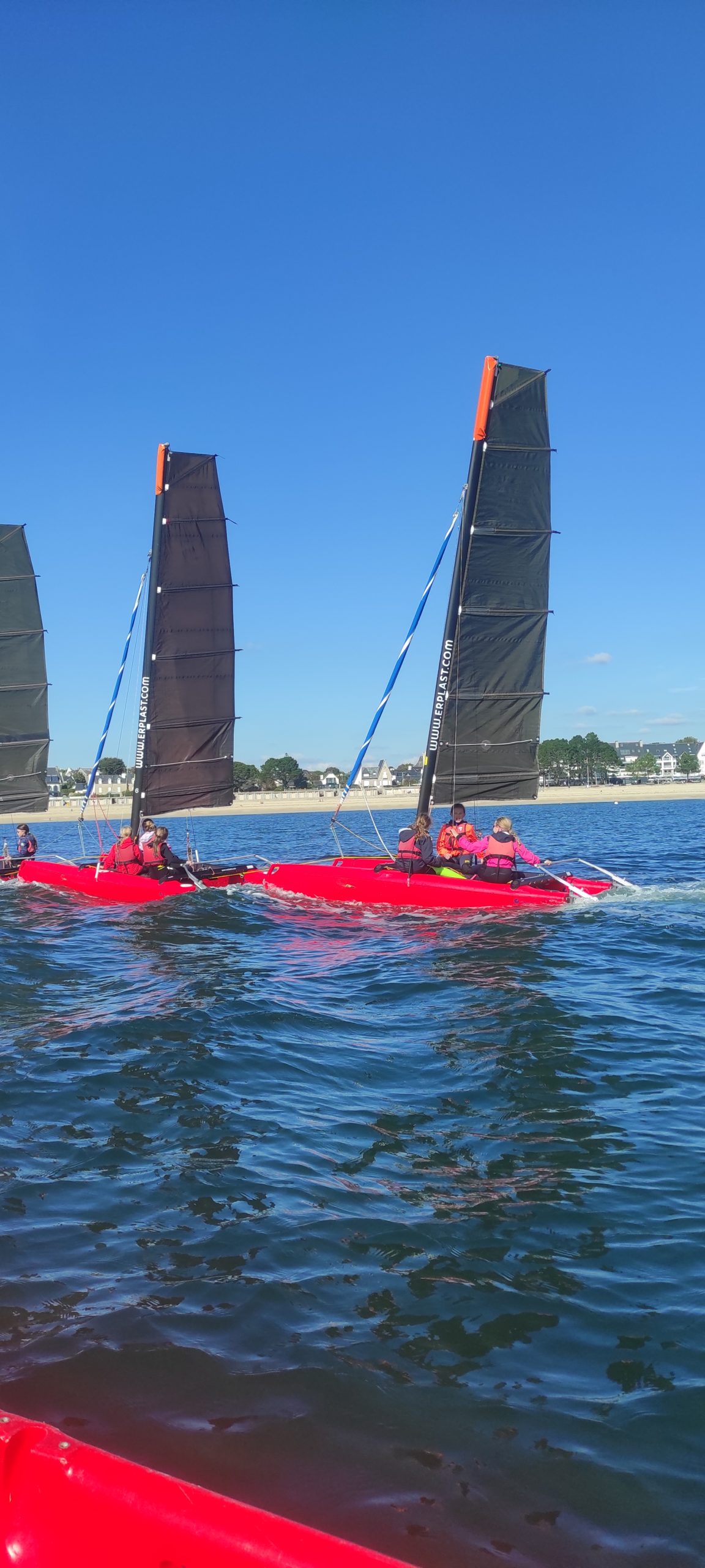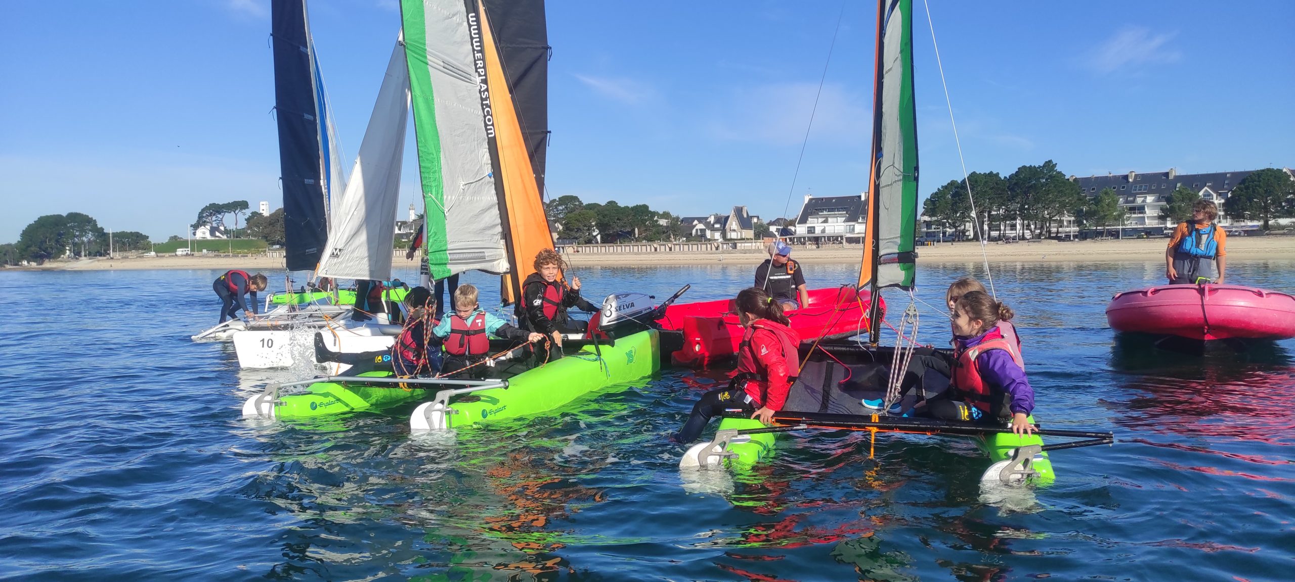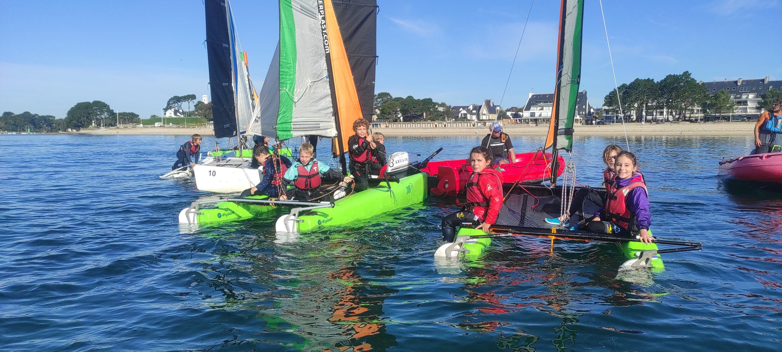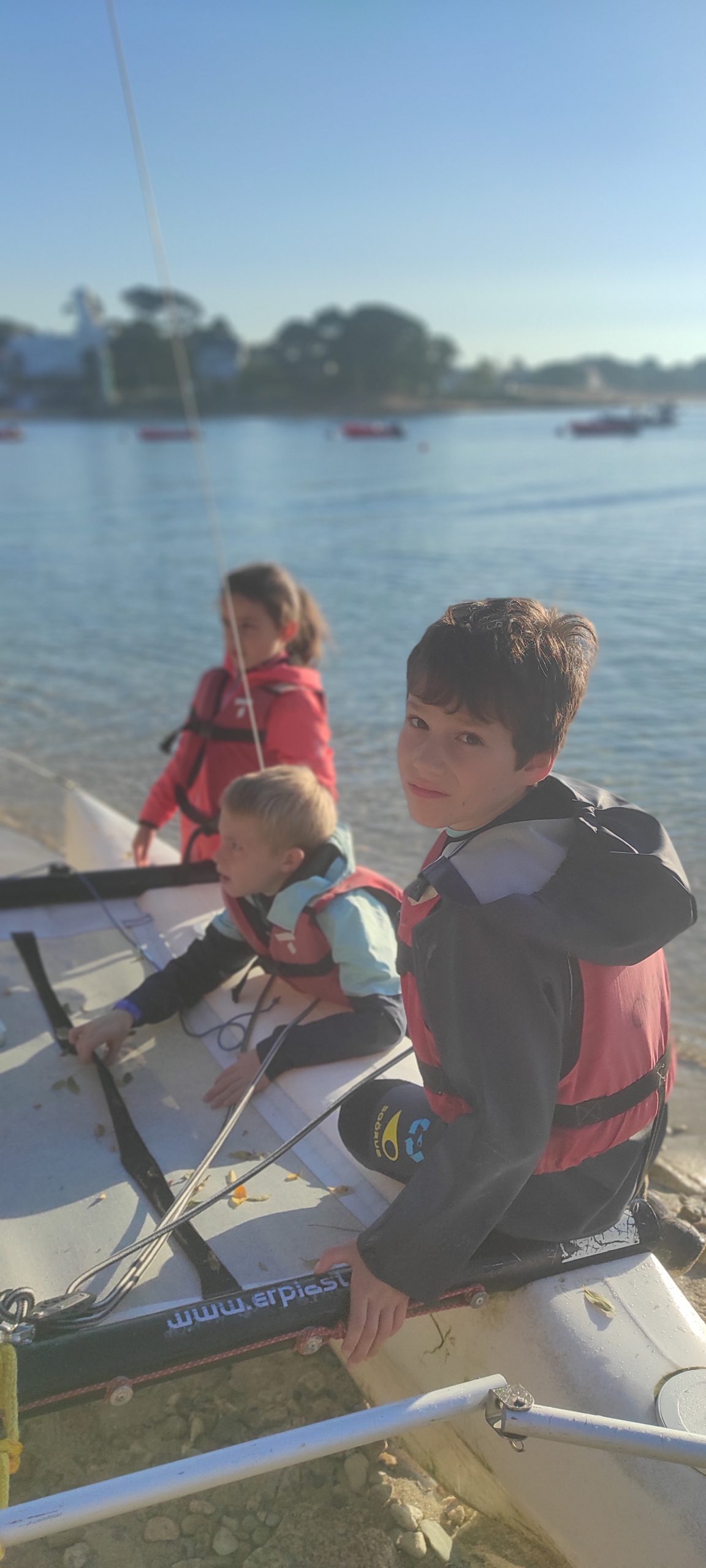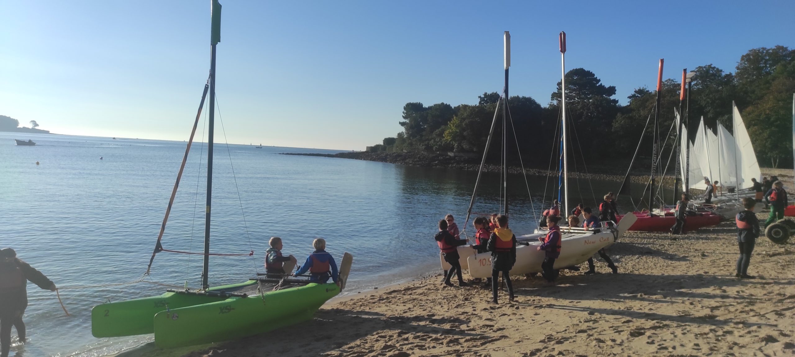 Début octobre, les élèves de CE2-CM1-CM2 ont vécu une belle aventure au Centre nautique de Sainte Marine : trois jours pour découvrir les joies de la voile… et de l’eau parfois !