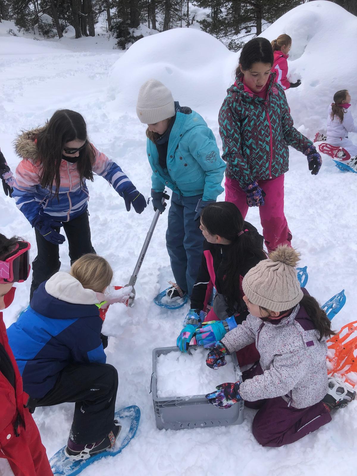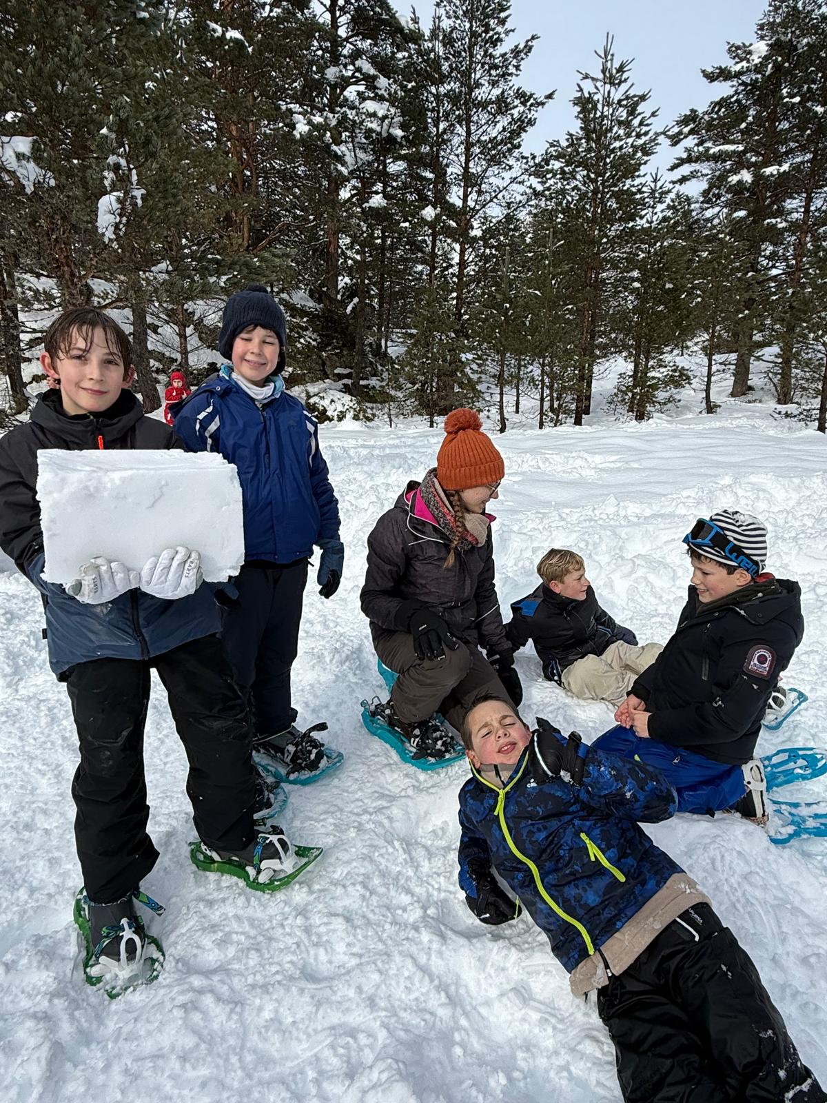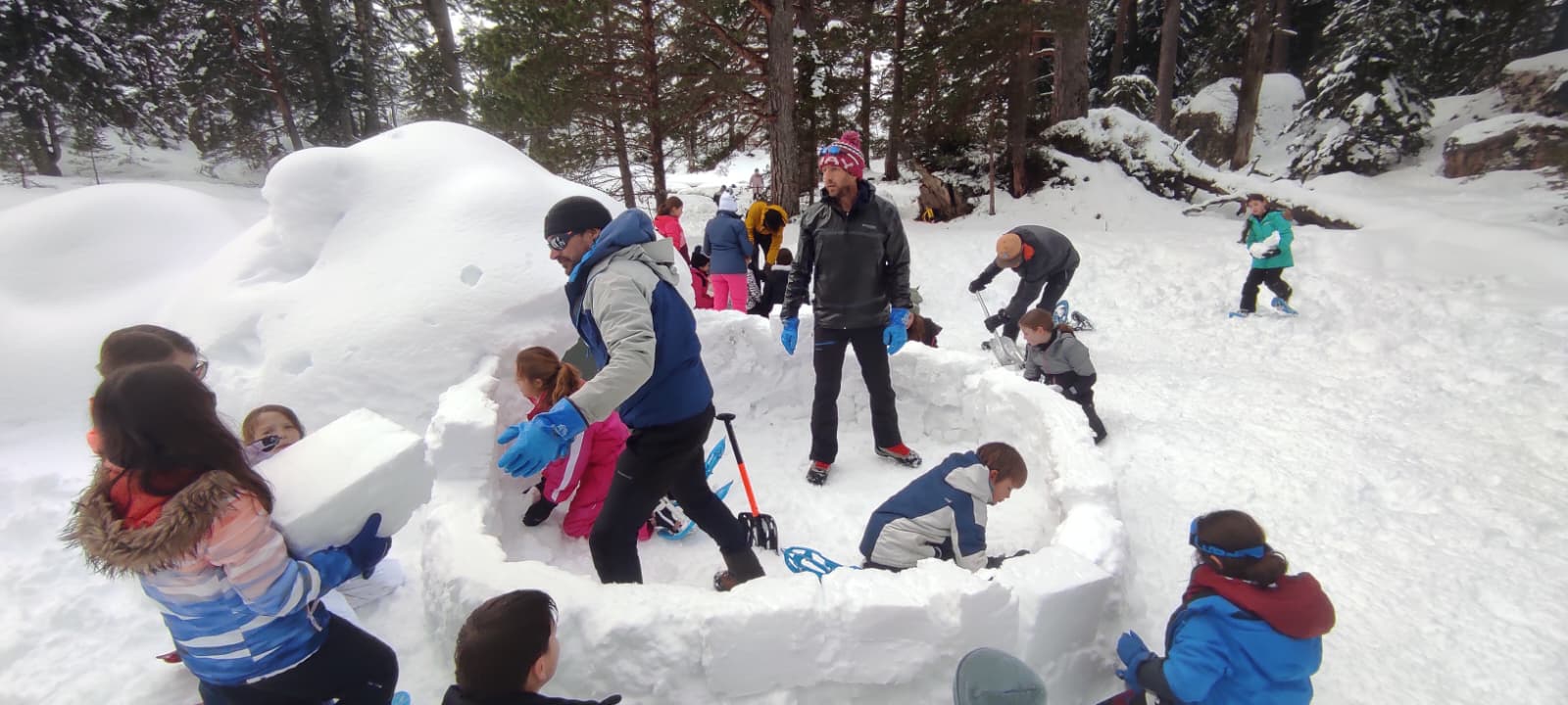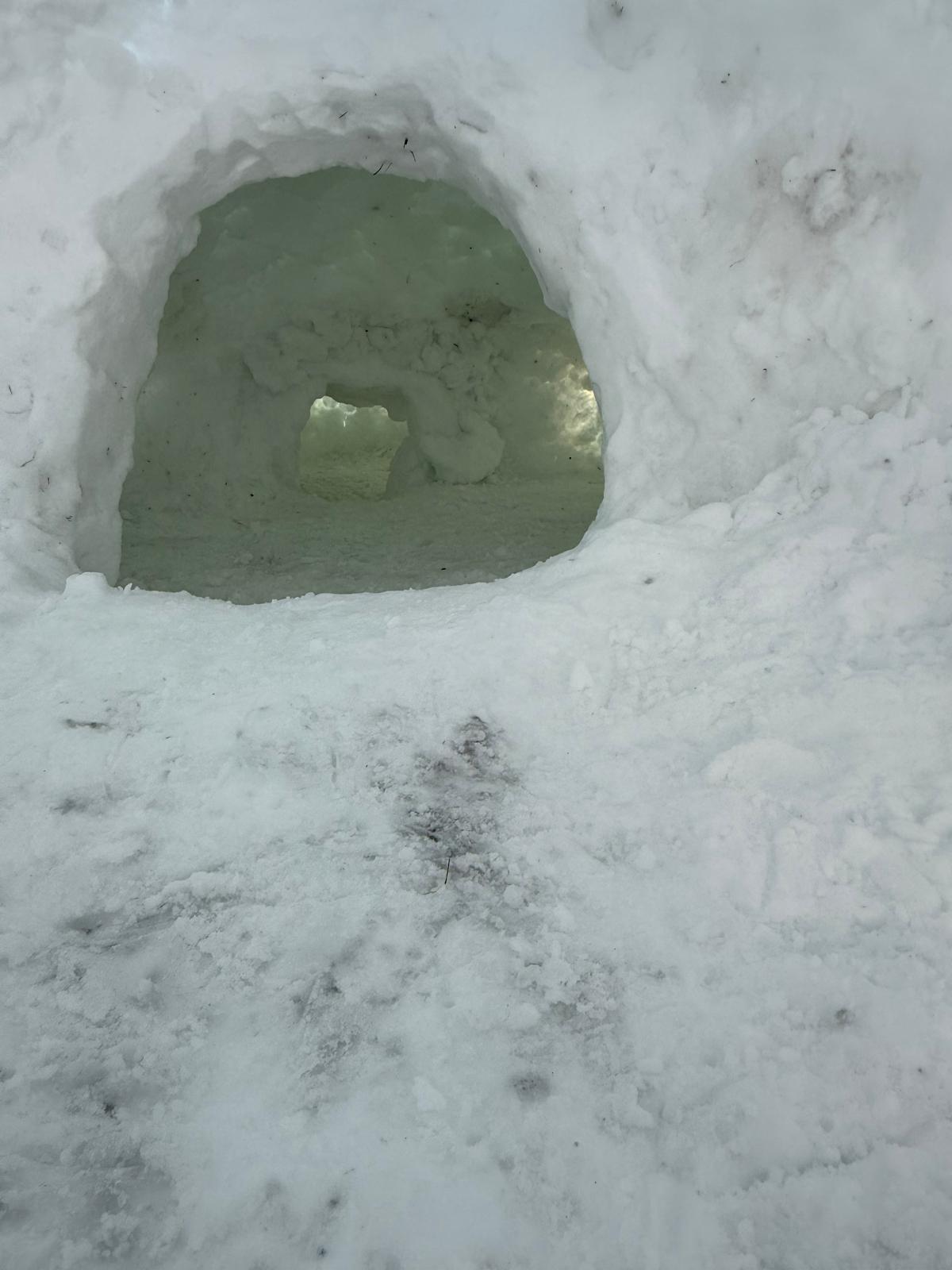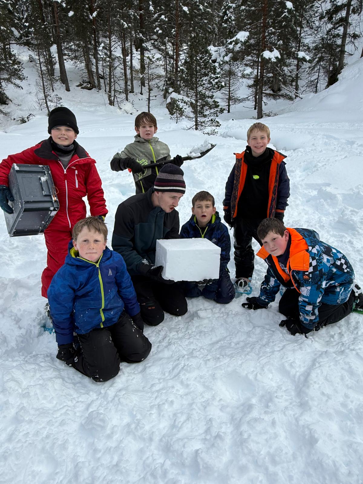 Puis on s’est rassemblés pour faire un igloo géant ! On a fait des briques de neige, des enfants les apportaient aux encadrants qui construisaient les murs et d’autres maçonnaient l’igloo. Quel travail ! Une fois l’igloo construit, on est presque tous allés dedans en même temps, c’était magique ! Il était temps de rentrer, la descente était plus facile que la montée, surtout avec les toboggans de neige mais on s’est plusieurs fois enfoncés dans la poudreuse.