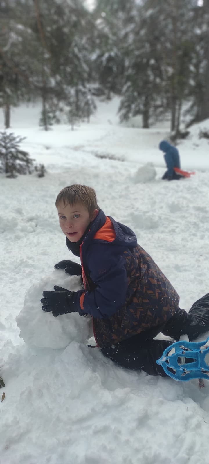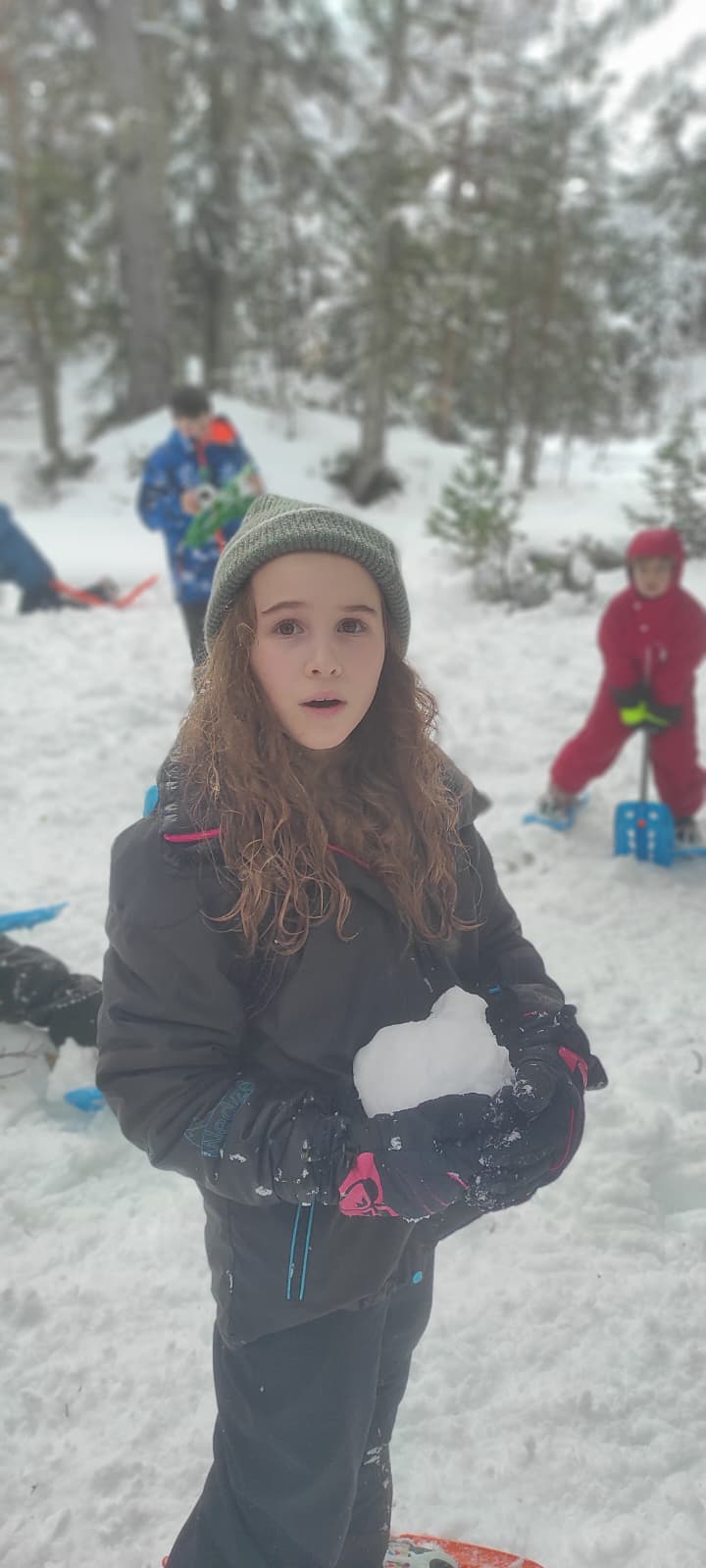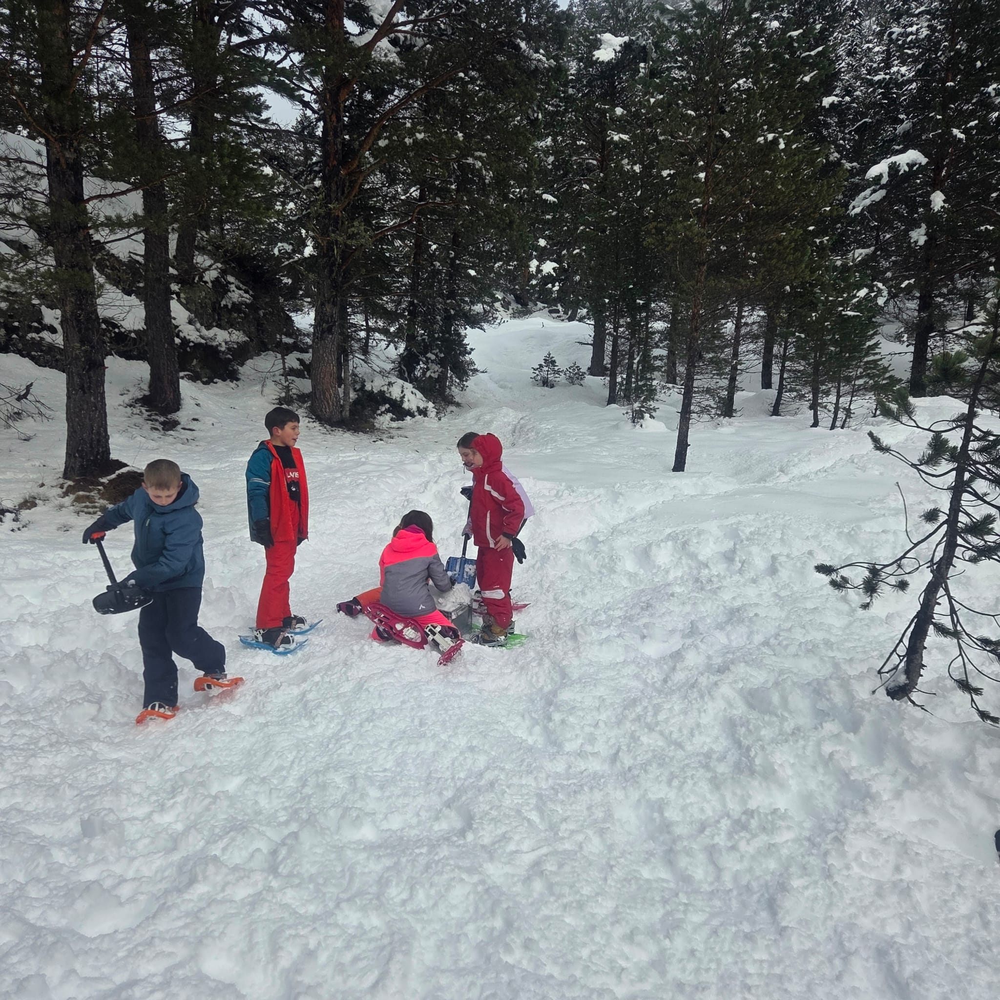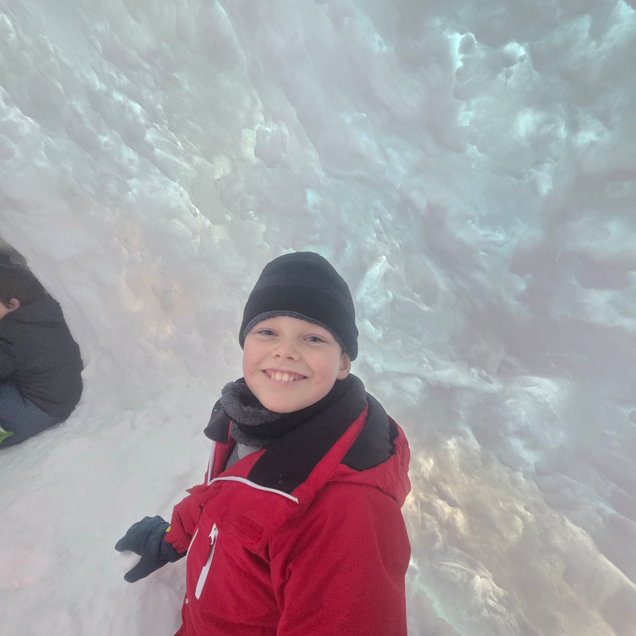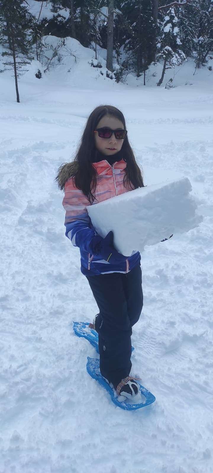 Puis on s’est rassemblés pour faire un igloo géant ! On a fait des briques de neige, des enfants les apportaient aux encadrants qui construisaient les murs et d’autres maçonnaient l’igloo. Quel travail ! Une fois l’igloo construit, on est presque tous allés dedans en même temps, c’était magique ! Il était temps de rentrer, la descente était plus facile que la montée, surtout avec les toboggans de neige mais on s’est plusieurs fois enfoncés dans la poudreuse.