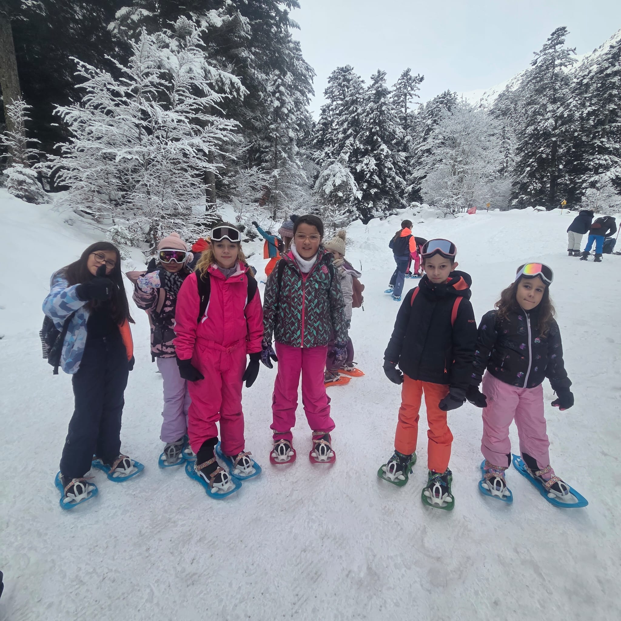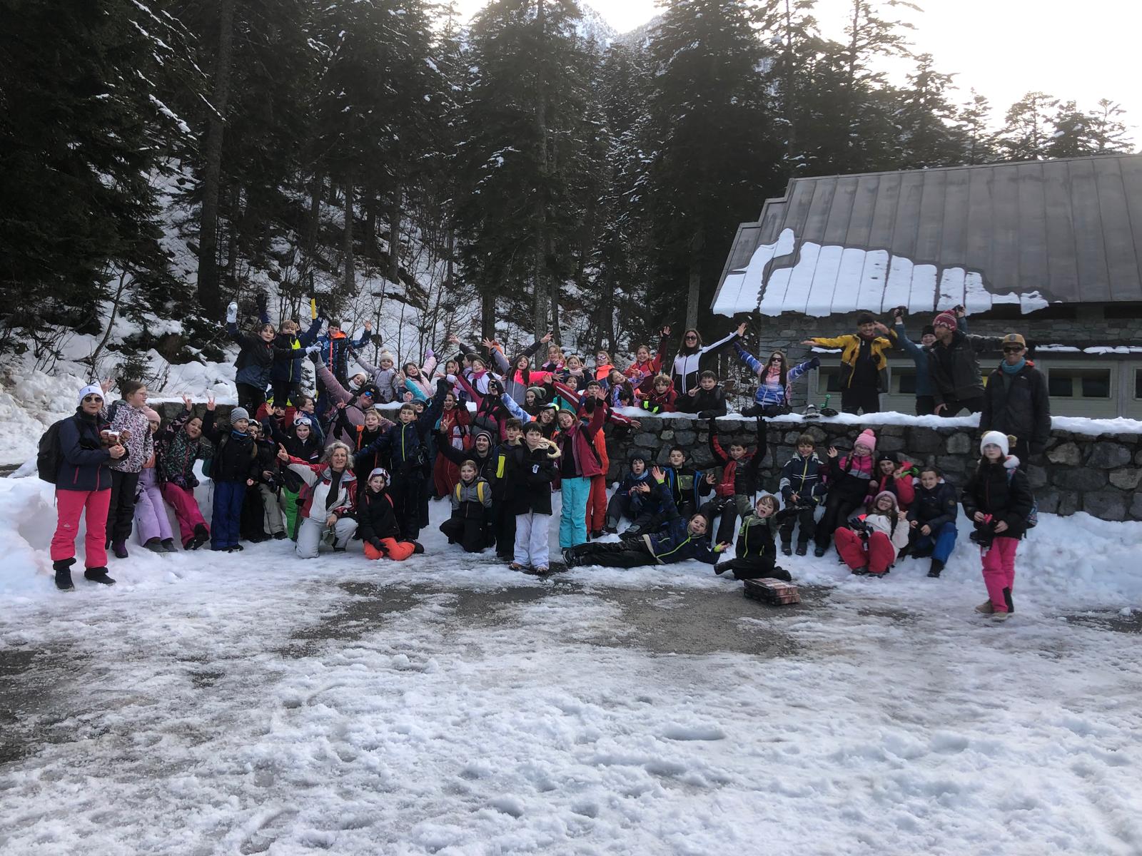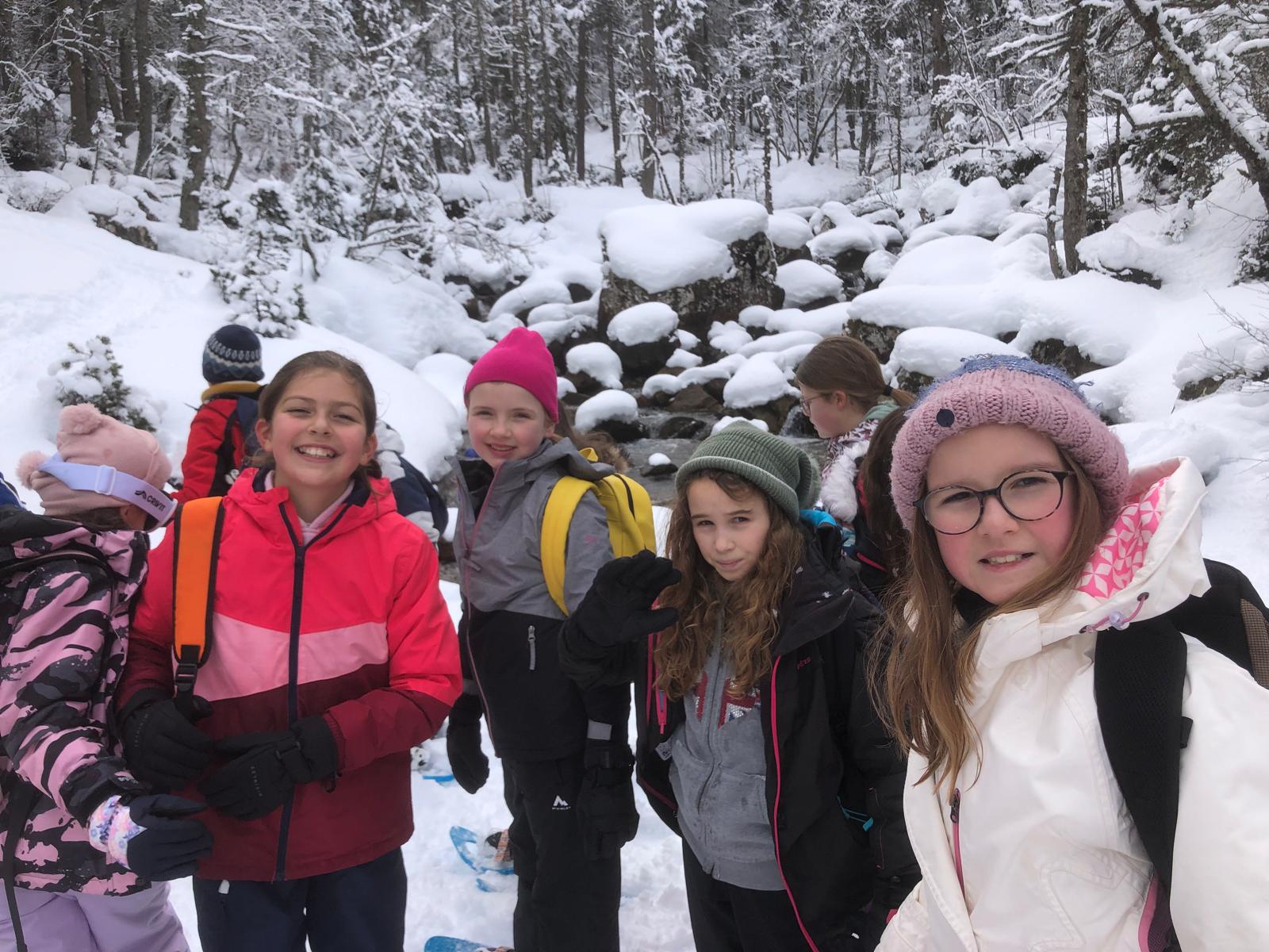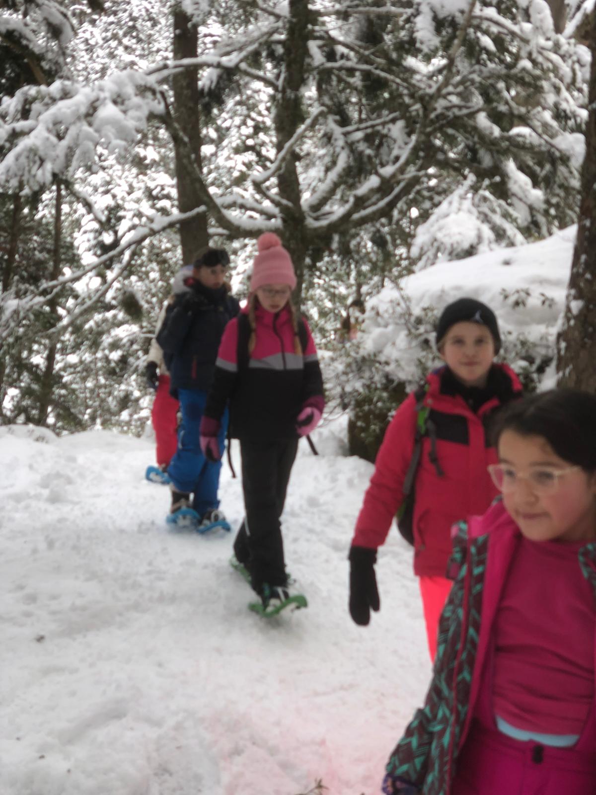 Puis on est partis en car pour faire une journée « trappeurs » : balade en raquettes (pas celles pour jouer au tennis) au Pont d’Espagne avec Yohann, Jojo, Tobias, Thelma et Stéphane.