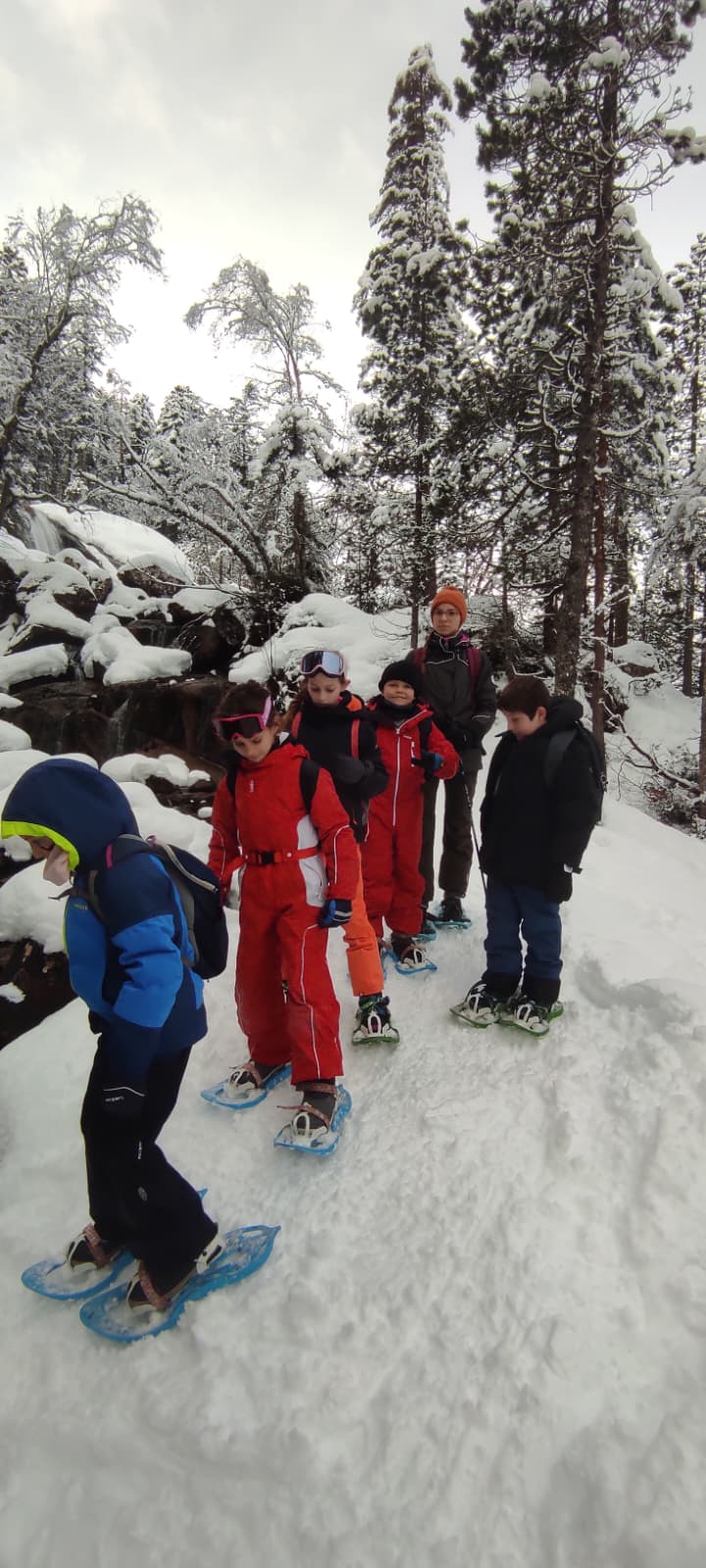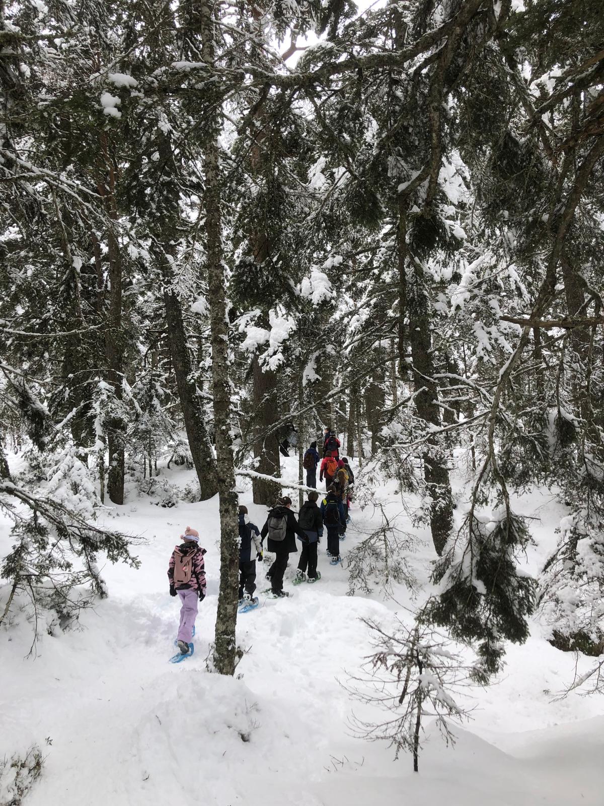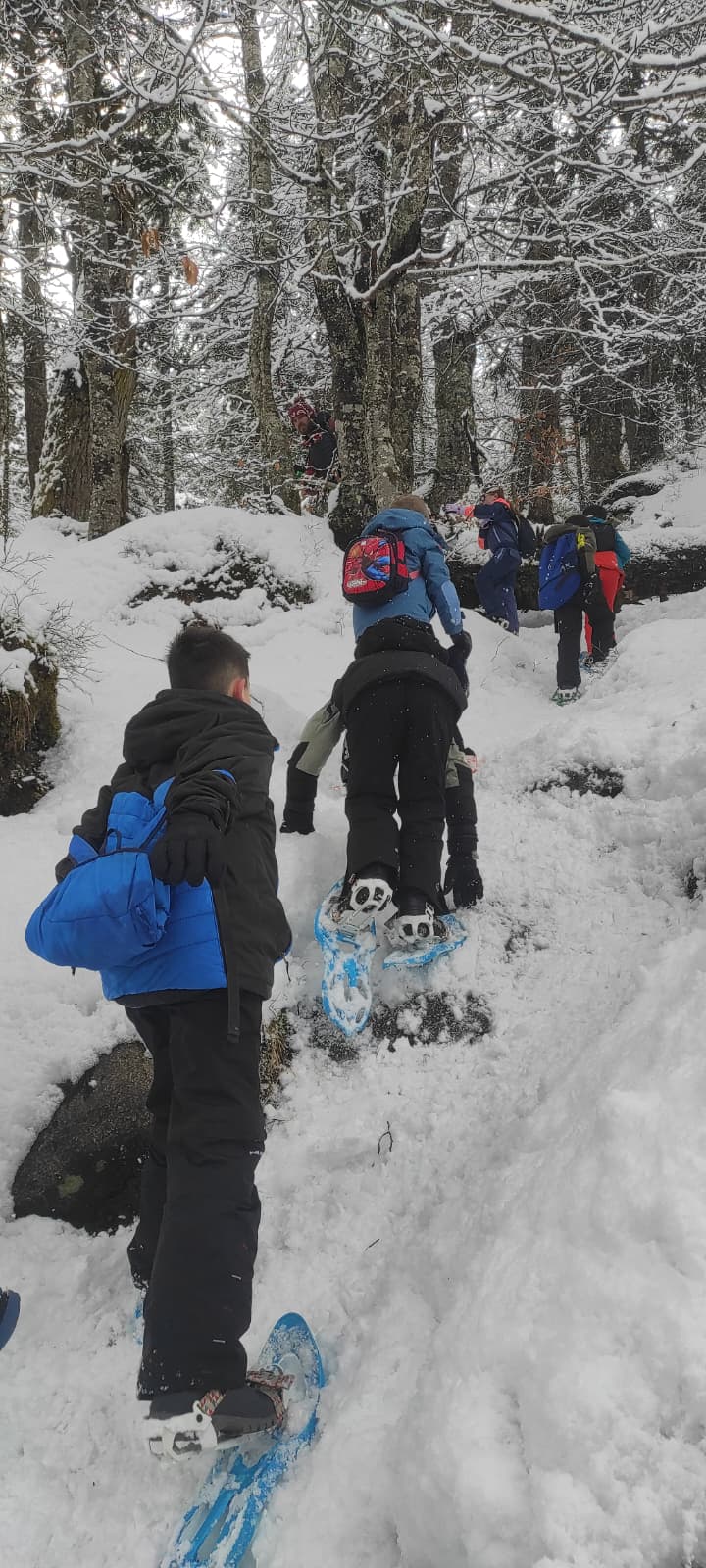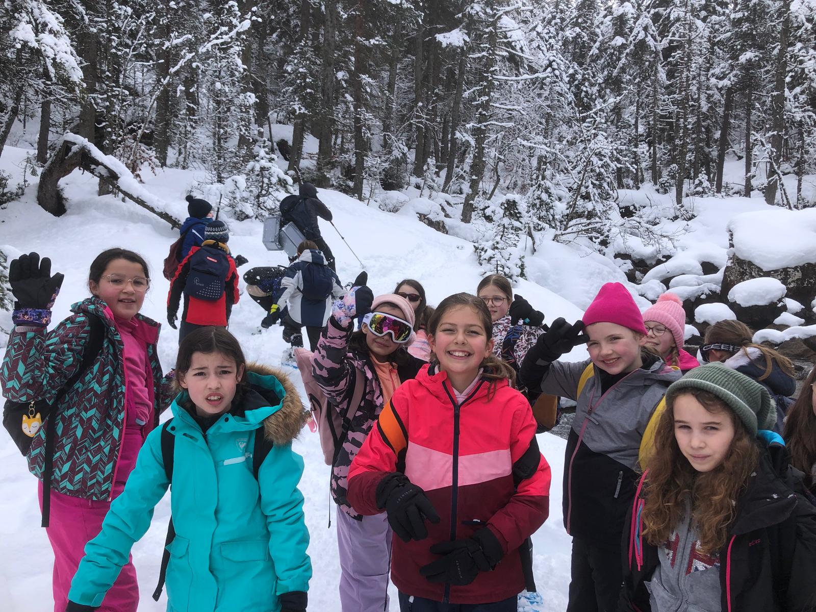 Puis on est partis en car pour faire une journée « trappeurs » : balade en raquettes (pas celles pour jouer au tennis) au Pont d’Espagne avec Yohann, Jojo, Tobias, Thelma et Stéphane.