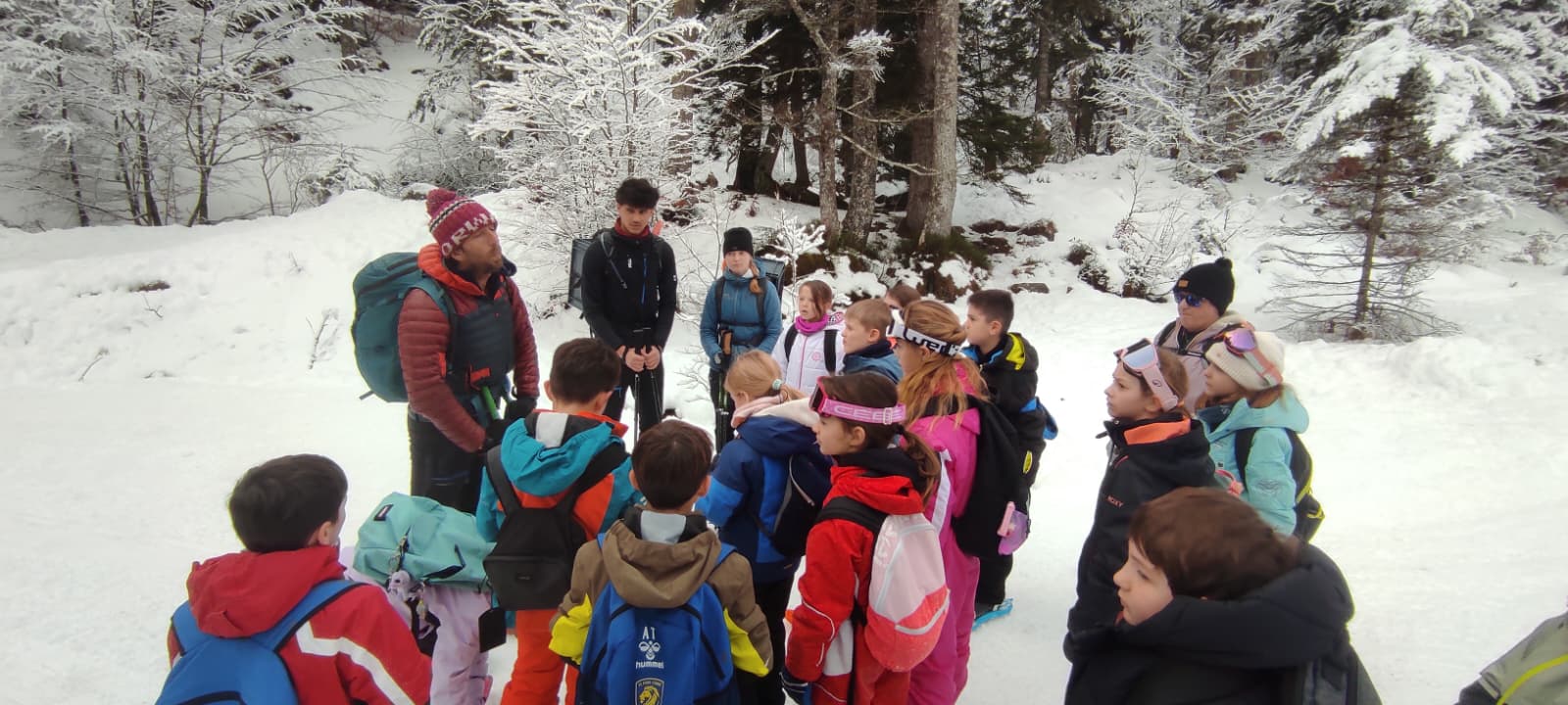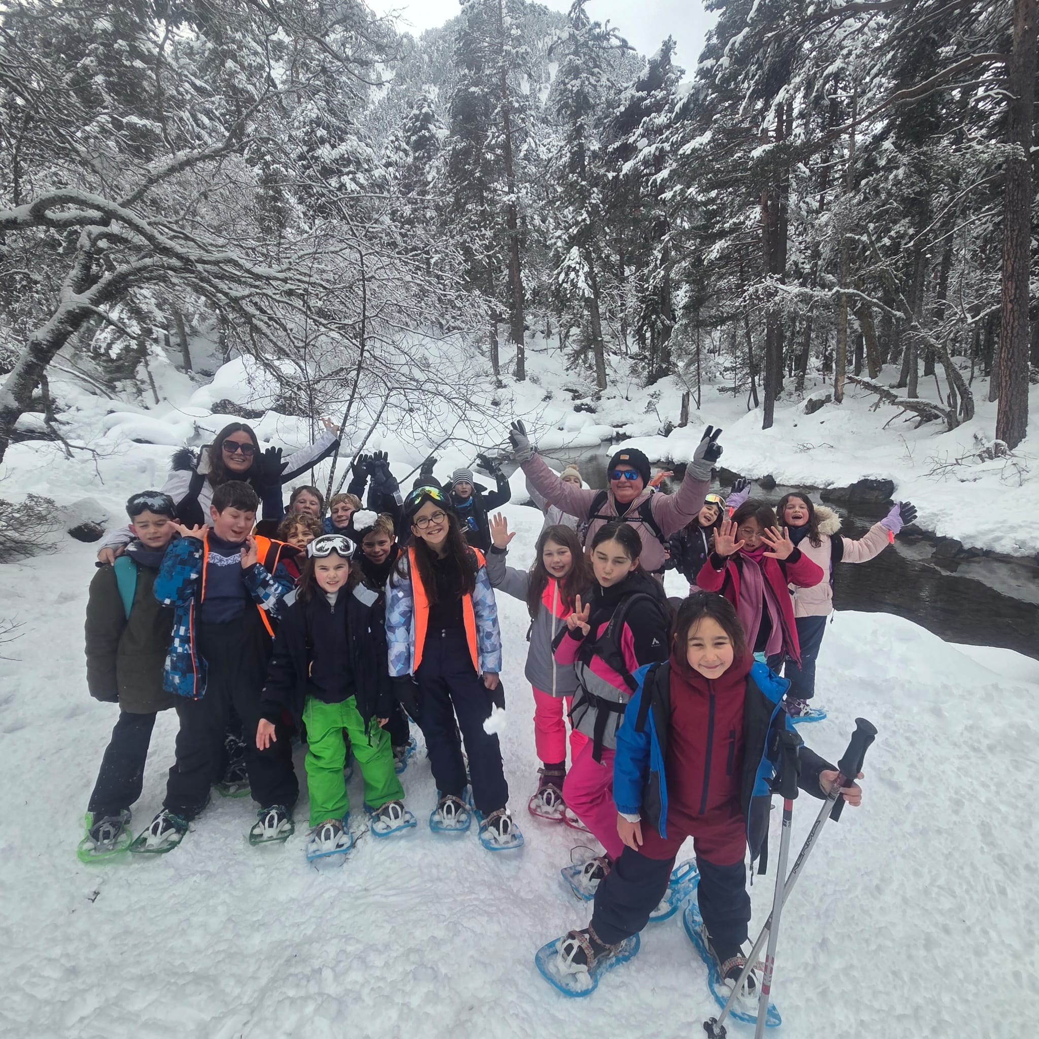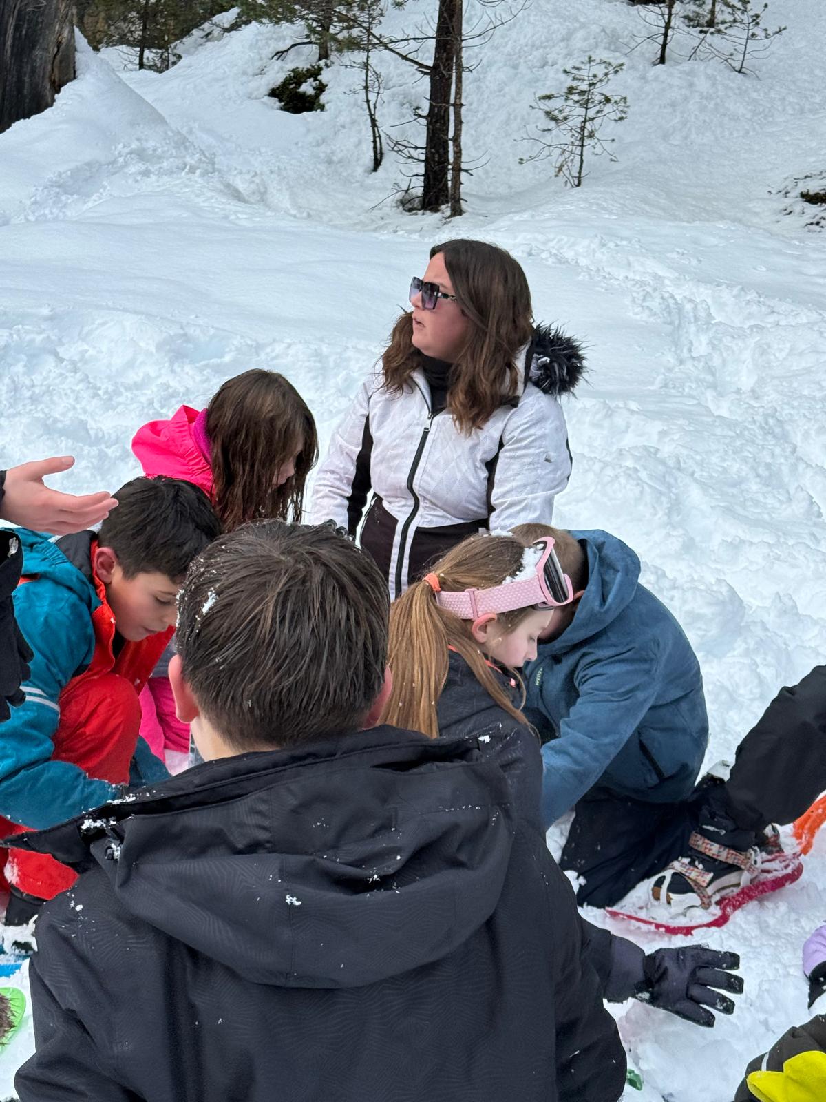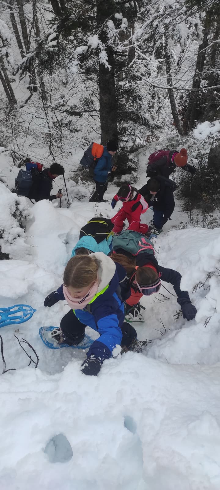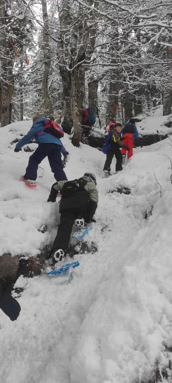 Puis on est partis en car pour faire une journée « trappeurs » : balade en raquettes (pas celles pour jouer au tennis) au Pont d’Espagne avec Yohann, Jojo, Tobias, Thelma et Stéphane.