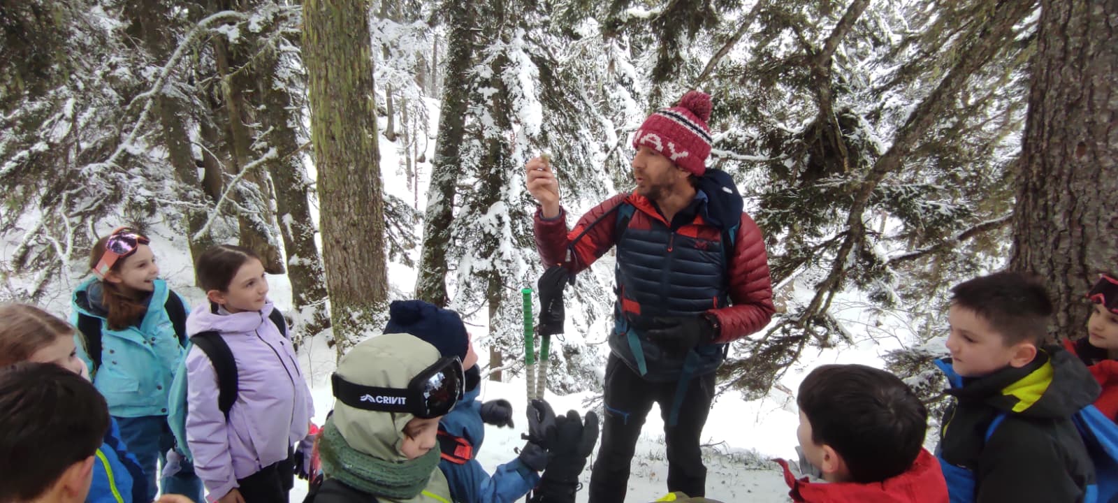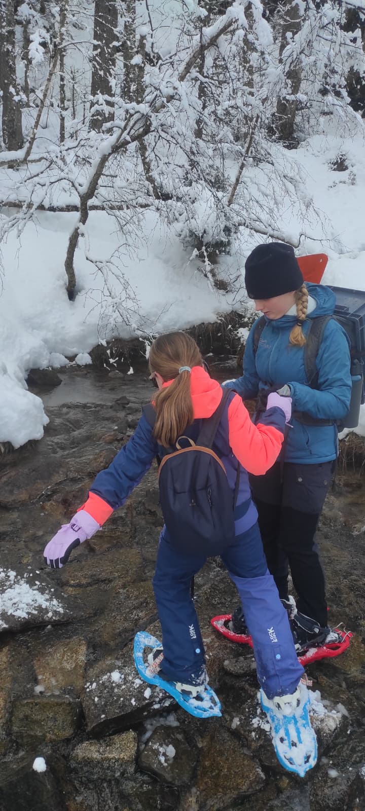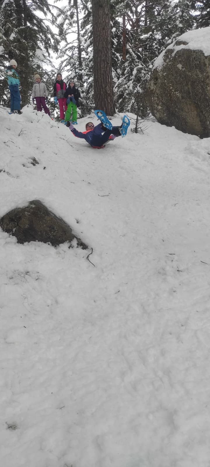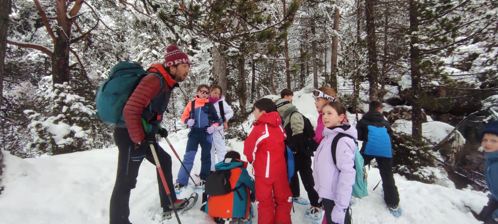 Puis on est partis en car pour faire une journée « trappeurs » : balade en raquettes (pas celles pour jouer au tennis) au Pont d’Espagne avec Yohann, Jojo, Tobias, Thelma et Stéphane.