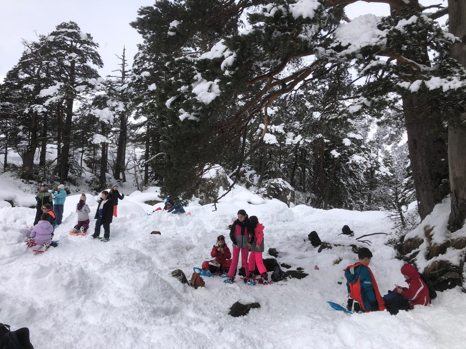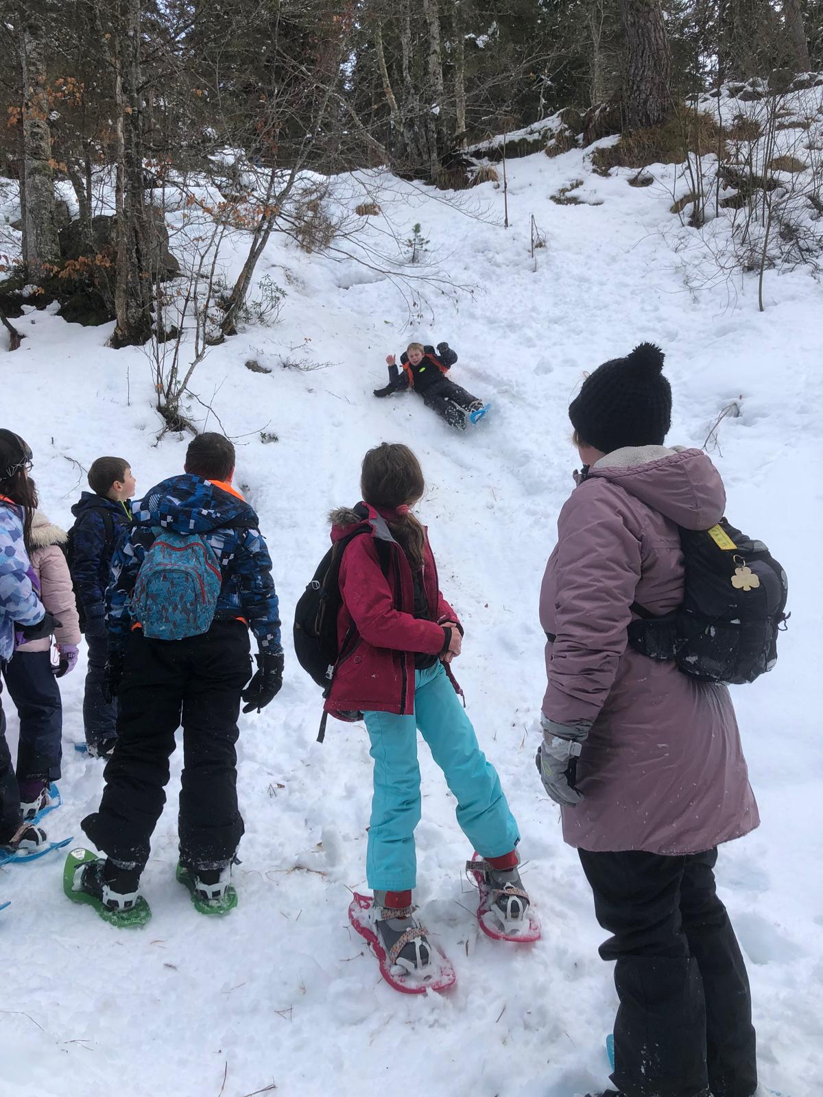 Après le sport, le réconfort, le pique-nique et surtout les jeux dans la neige poudreuse ! Tout le monde se roulait dans la neige et faisait des batailles de boules de neige, des glissades et des bonhommes de neige.