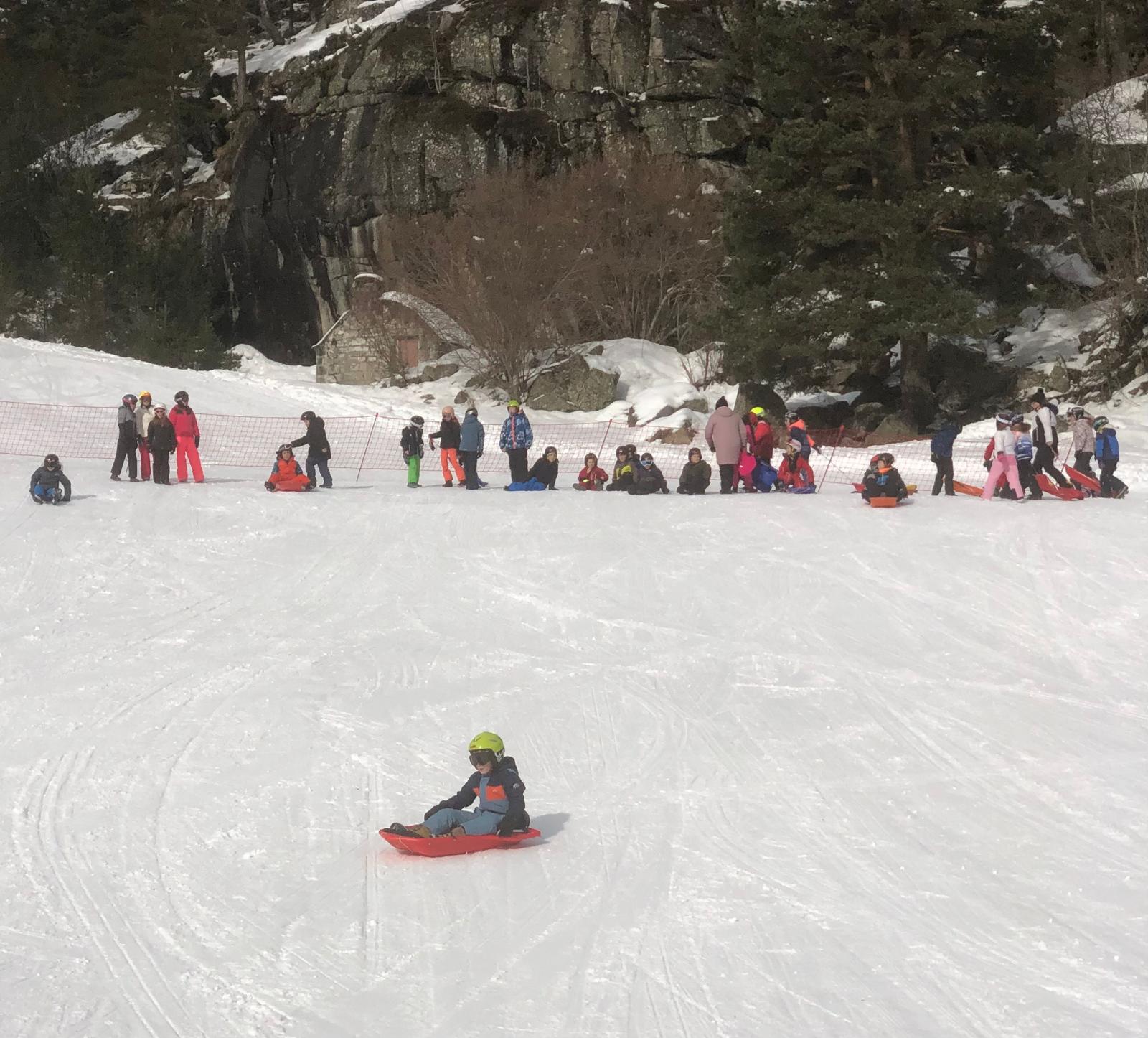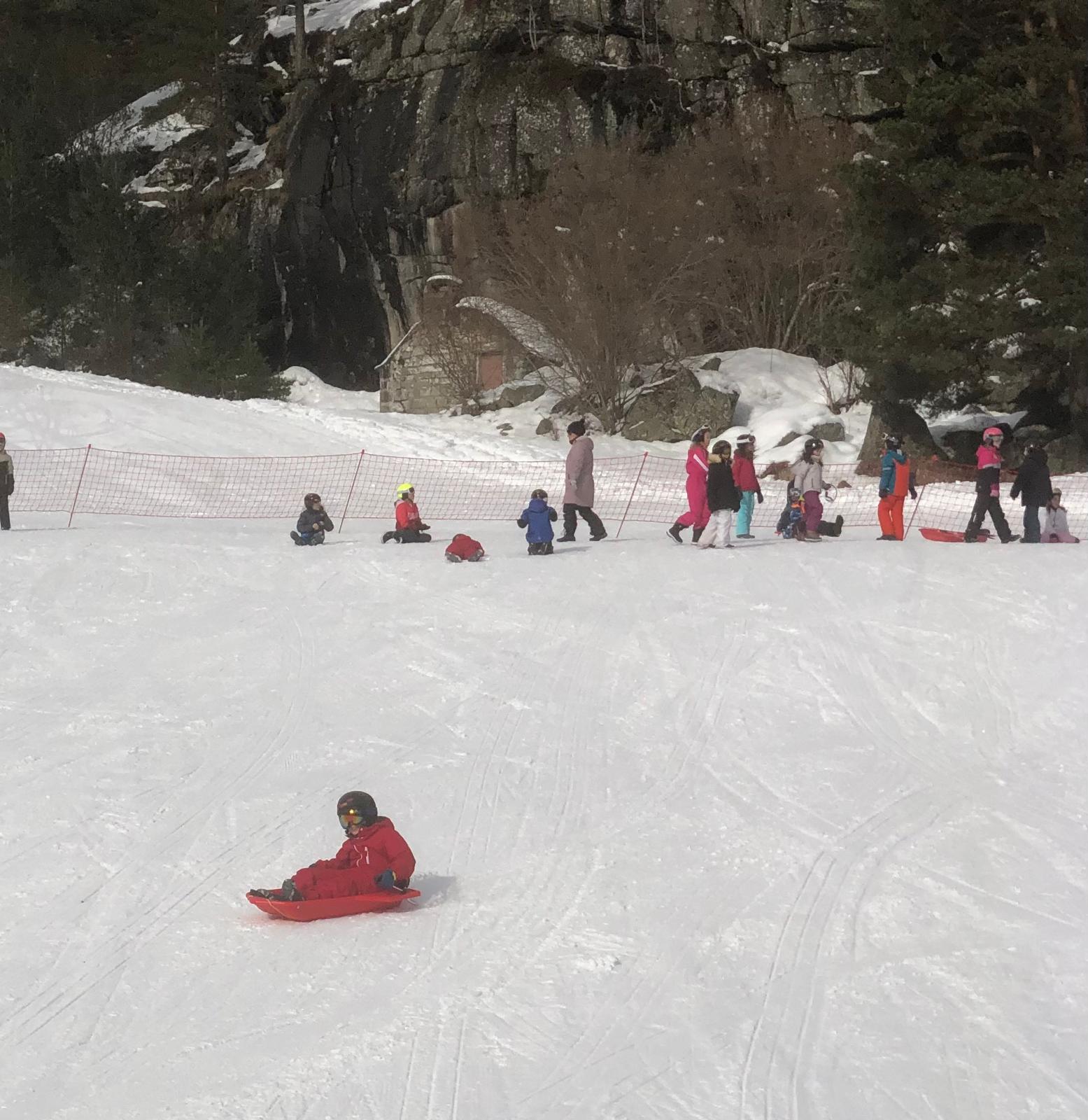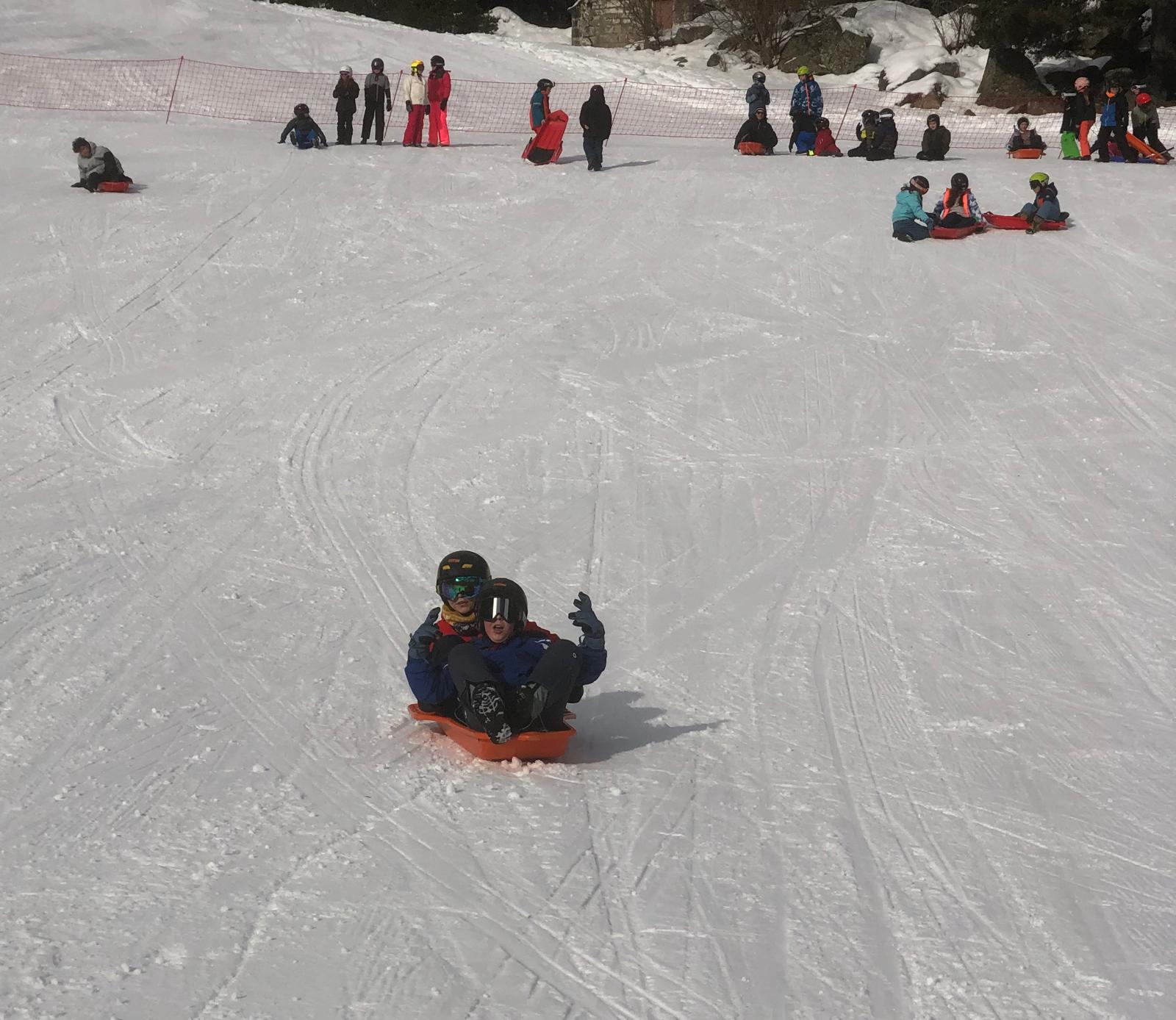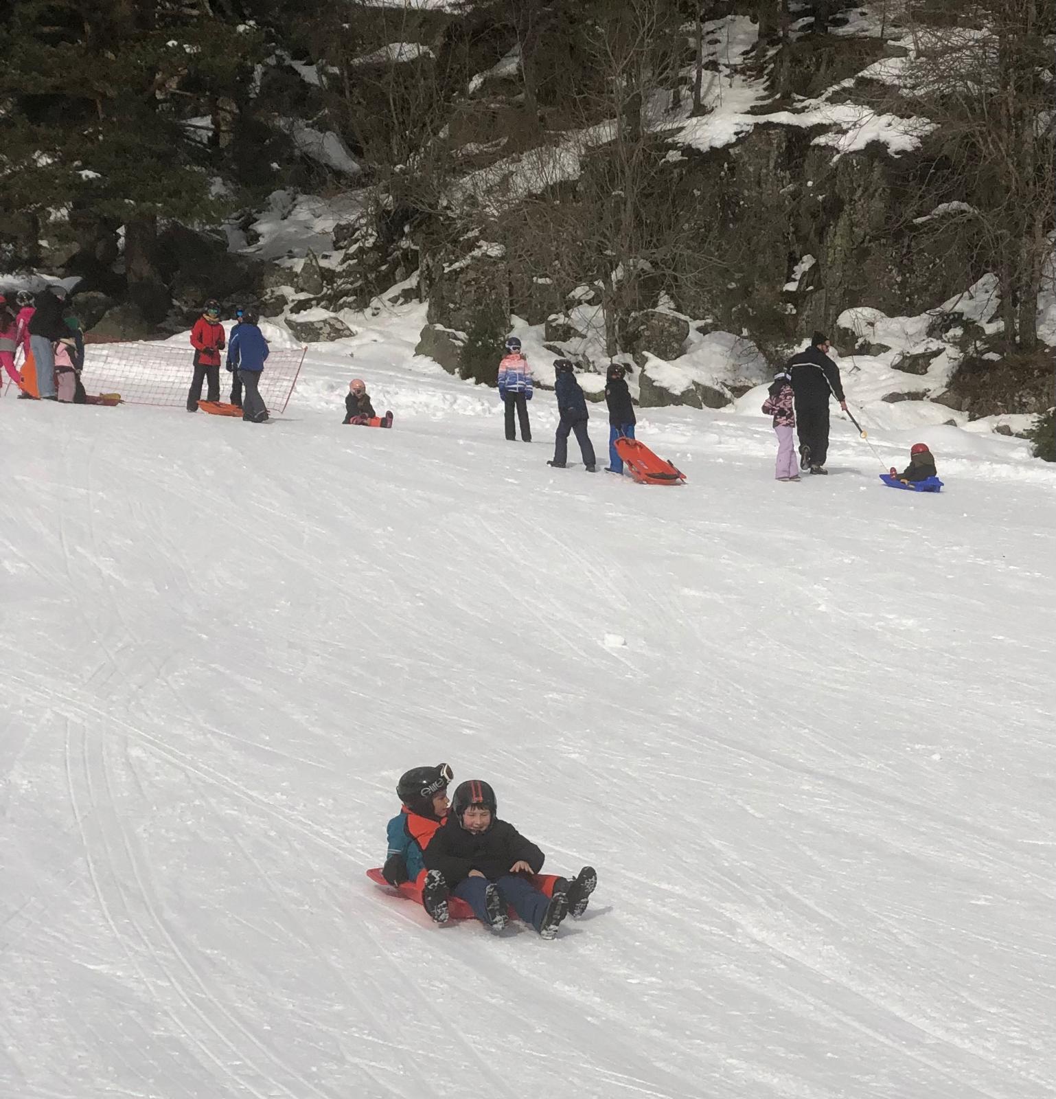 On s’est alors retrouvés dans la grande salle et Cécile et Goulven nous ont dit qu’à la place nous allions aller faire de la luge. Tout le monde a crié de joie !