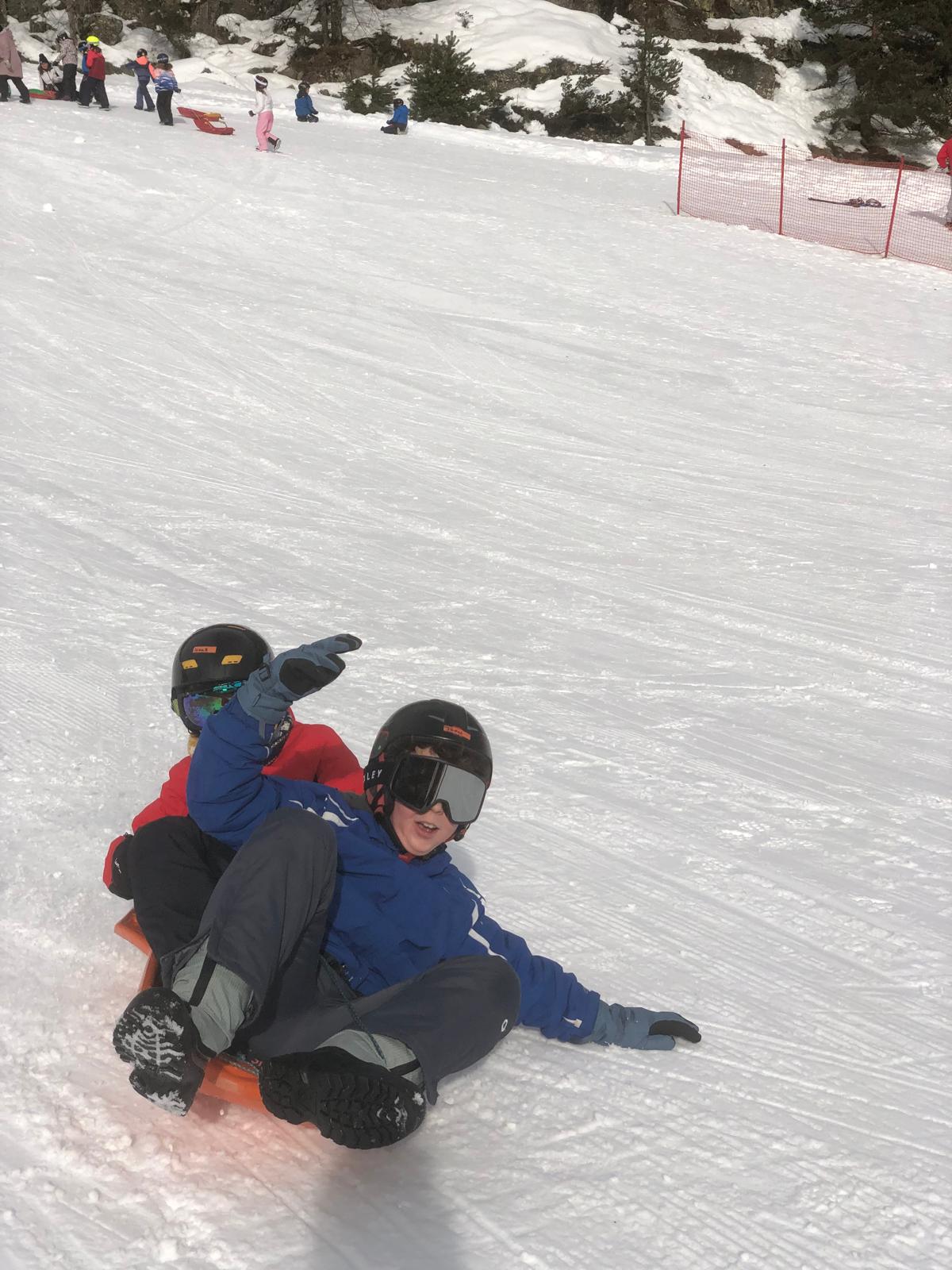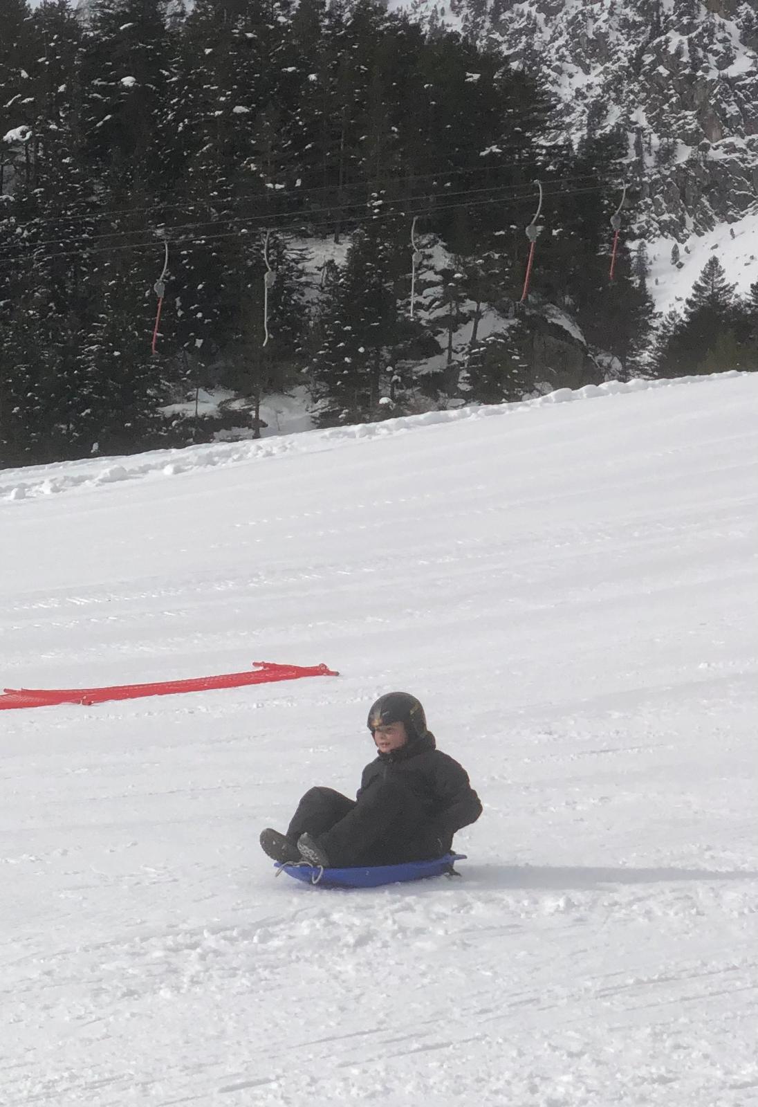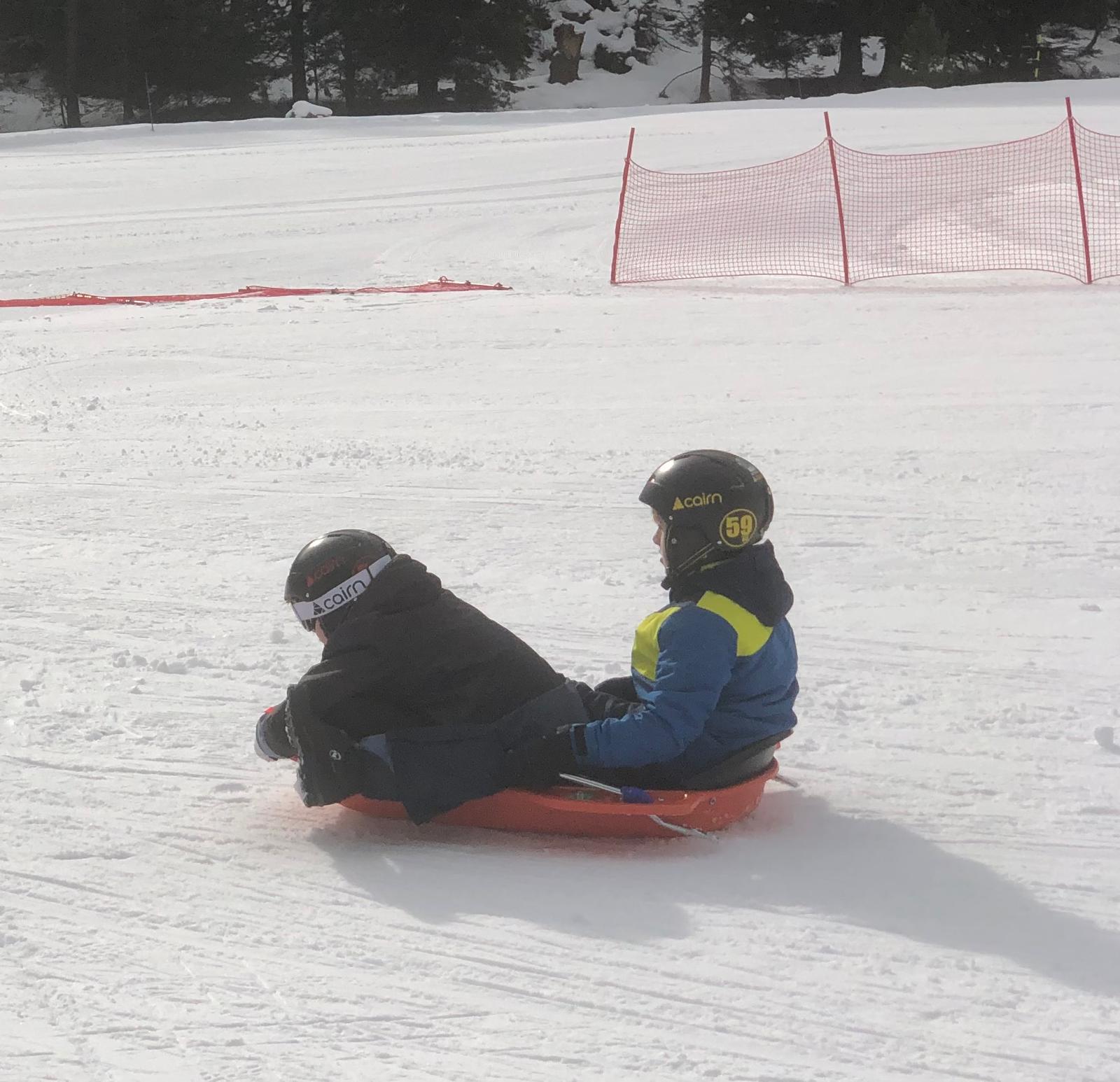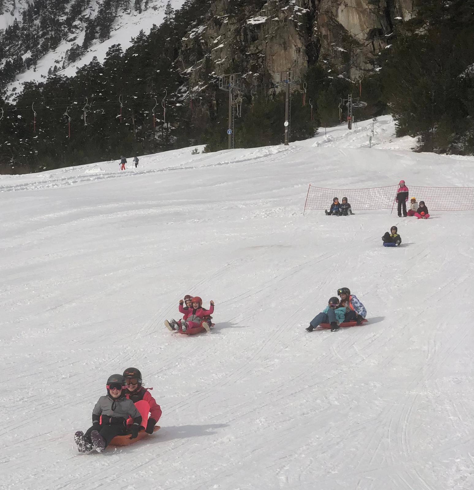 On s’est alors retrouvés dans la grande salle et Cécile et Goulven nous ont dit qu’à la place nous allions aller faire de la luge. Tout le monde a crié de joie !