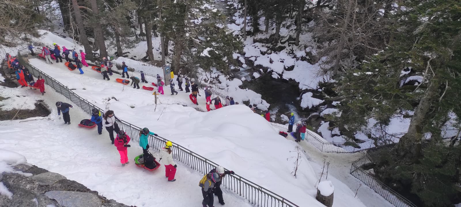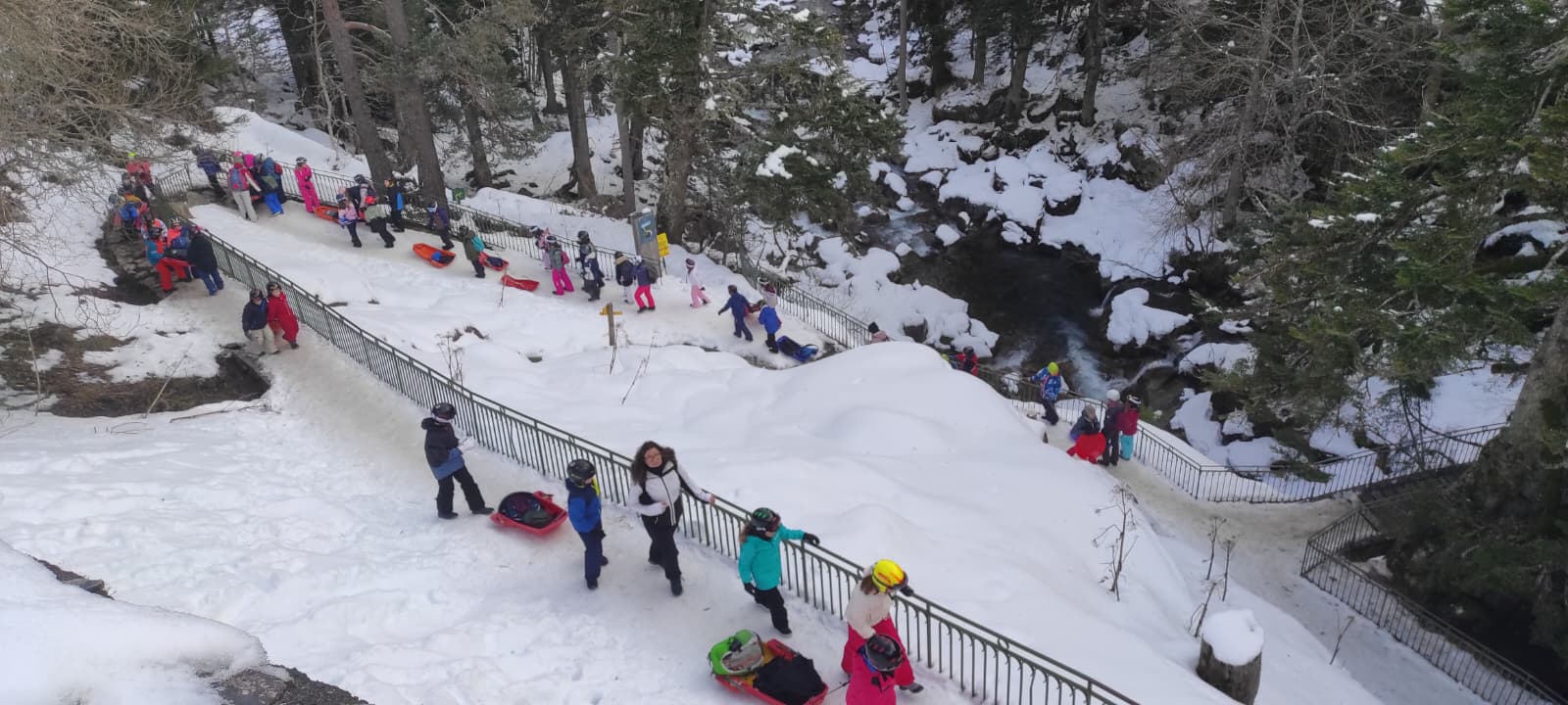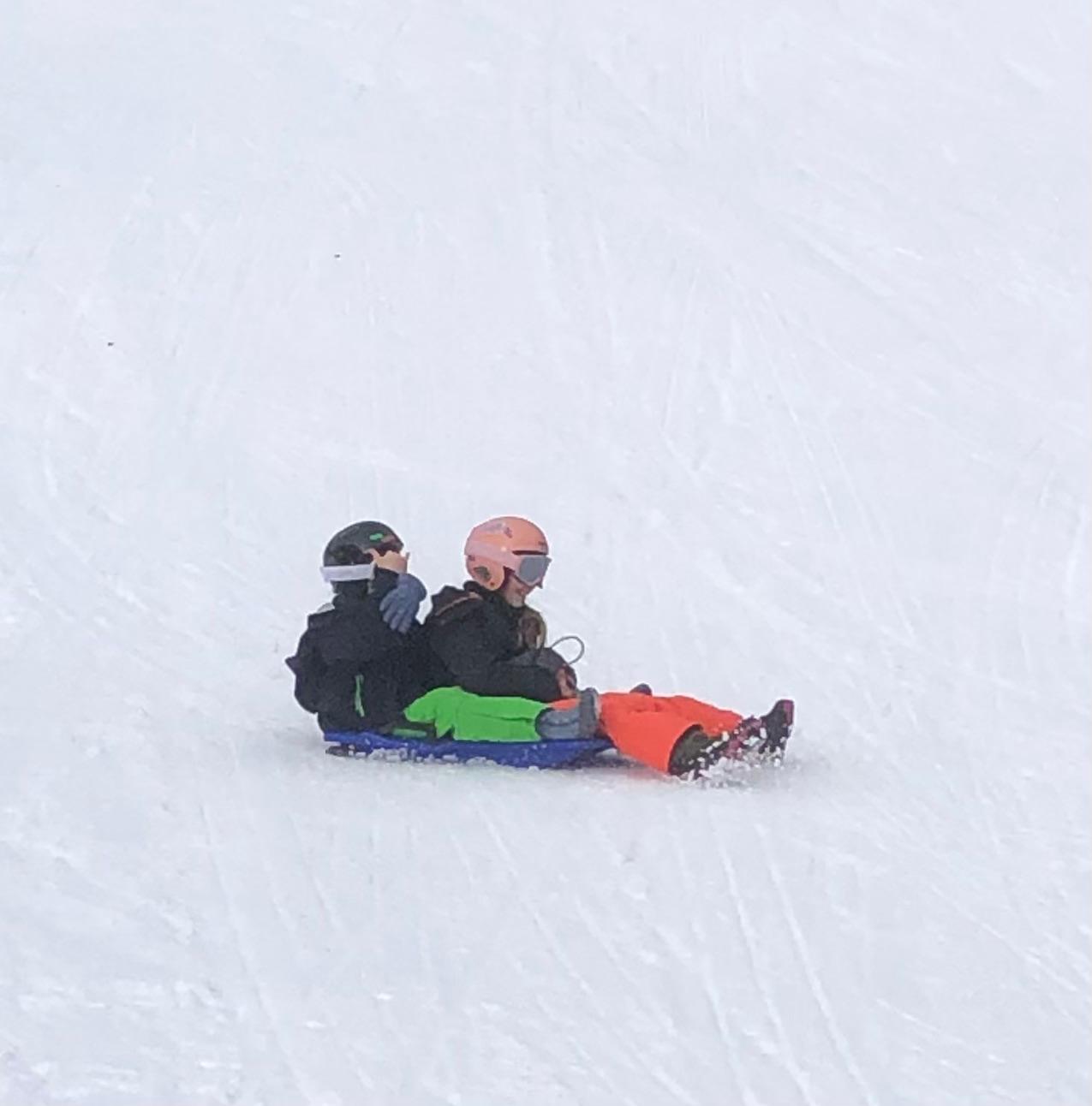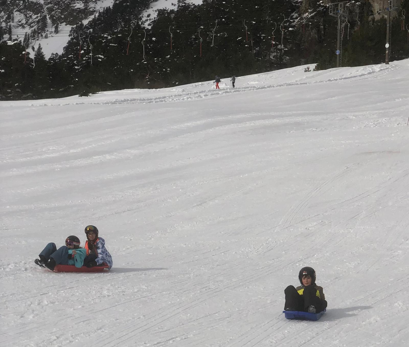 On s’est alors retrouvés dans la grande salle et Cécile et Goulven nous ont dit qu’à la place nous allions aller faire de la luge. Tout le monde a crié de joie !