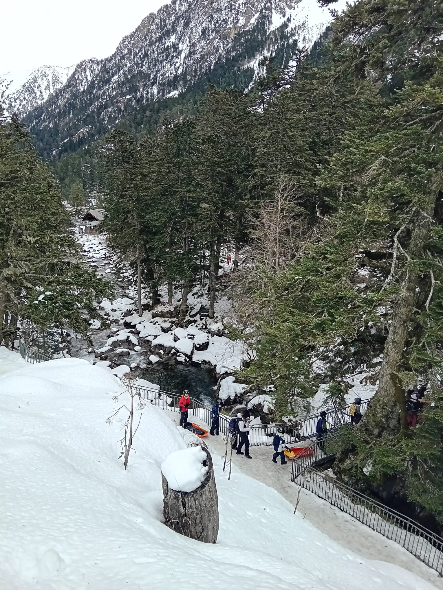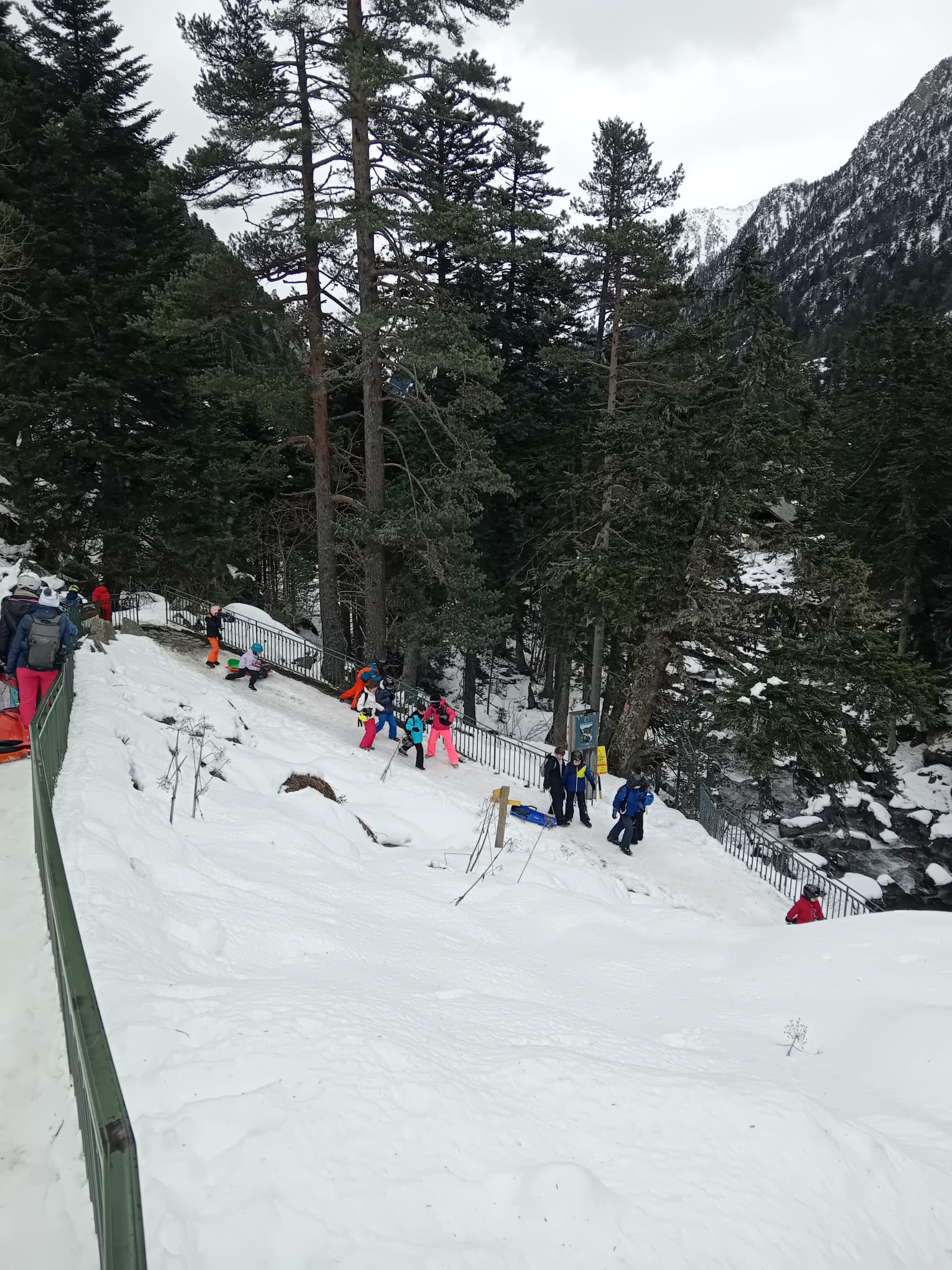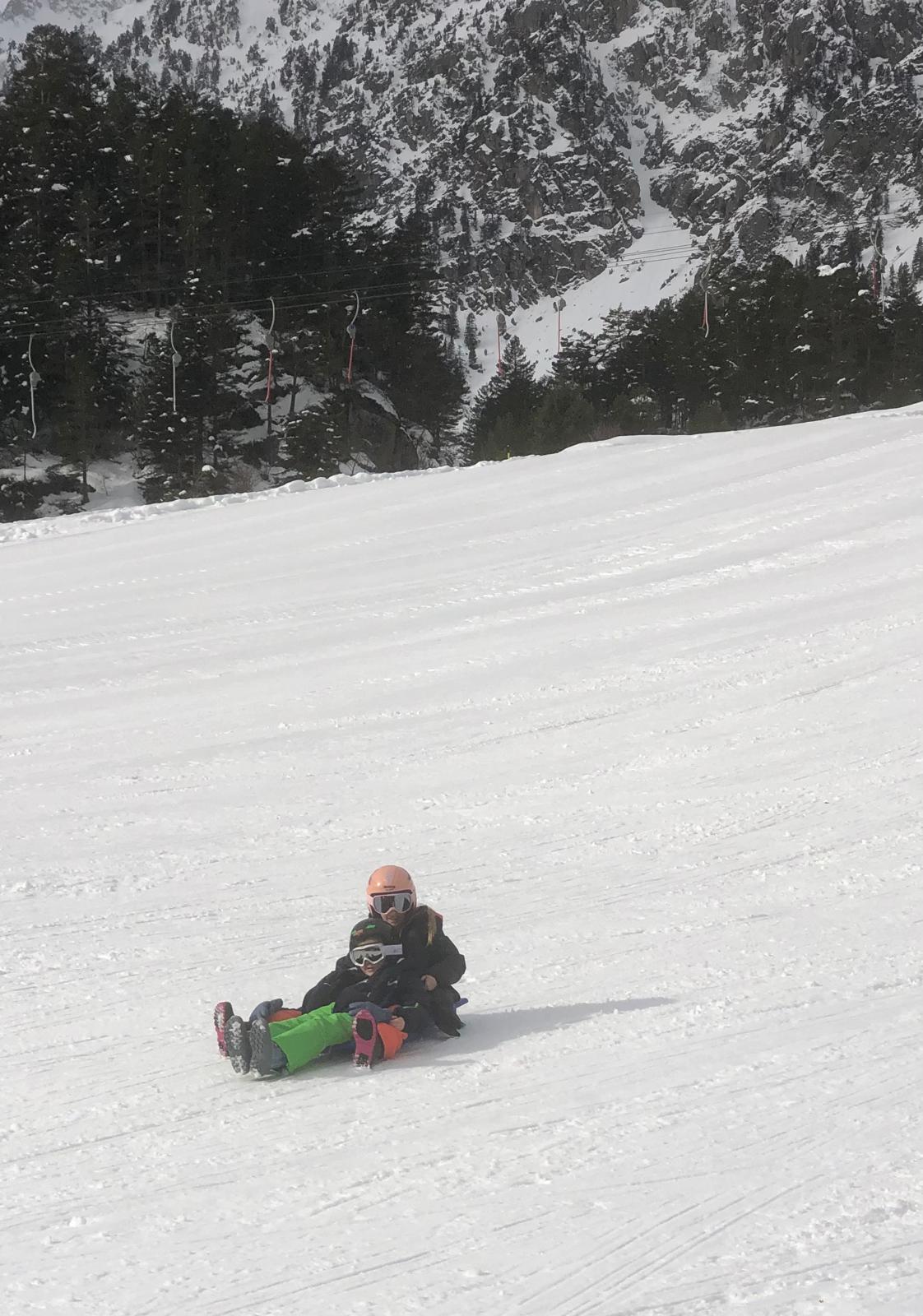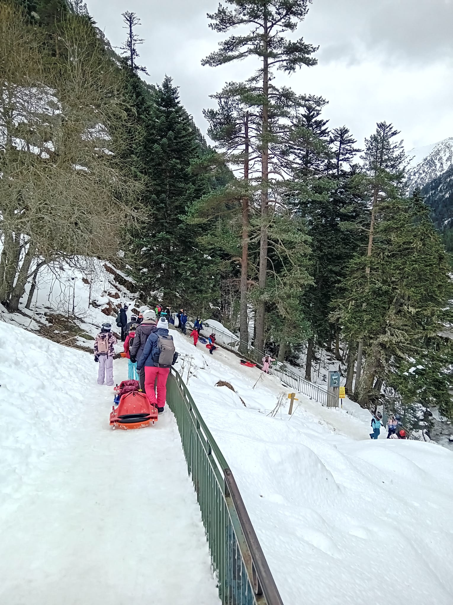 Le car est arrivé et nous avons récupéré des luges au magasin. Quand on est arrivés, il y avait plein de neige !!! Nous avons marché un peu pour arriver sur une immense descente de luge ! Tout le monde s’est précipité sur les luges, parfois, on était même 2 ou 3 par luge ! C’était GENIAL !!!