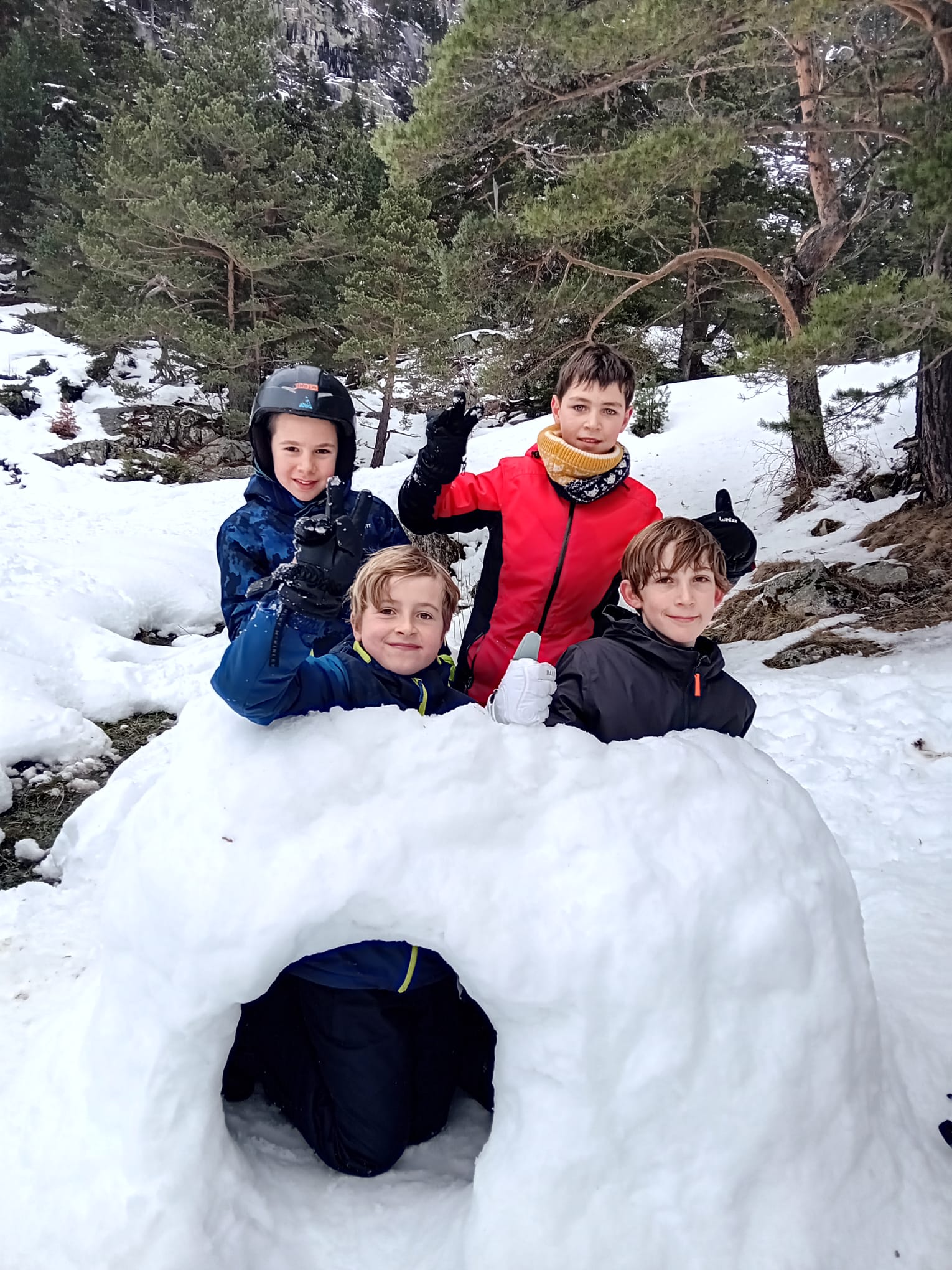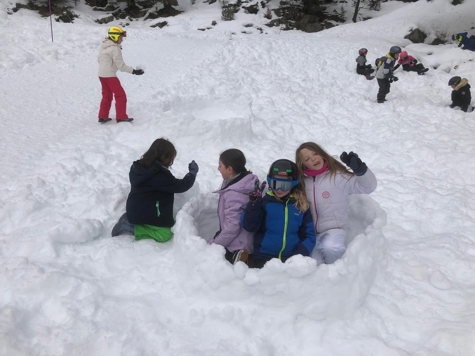 Après le pique-nique, on a fait des batailles de boules de neige et on a construit des igloos comme on avait appris ! Toutes les classes se sont affrontées, et on a même attaqué Goulven !